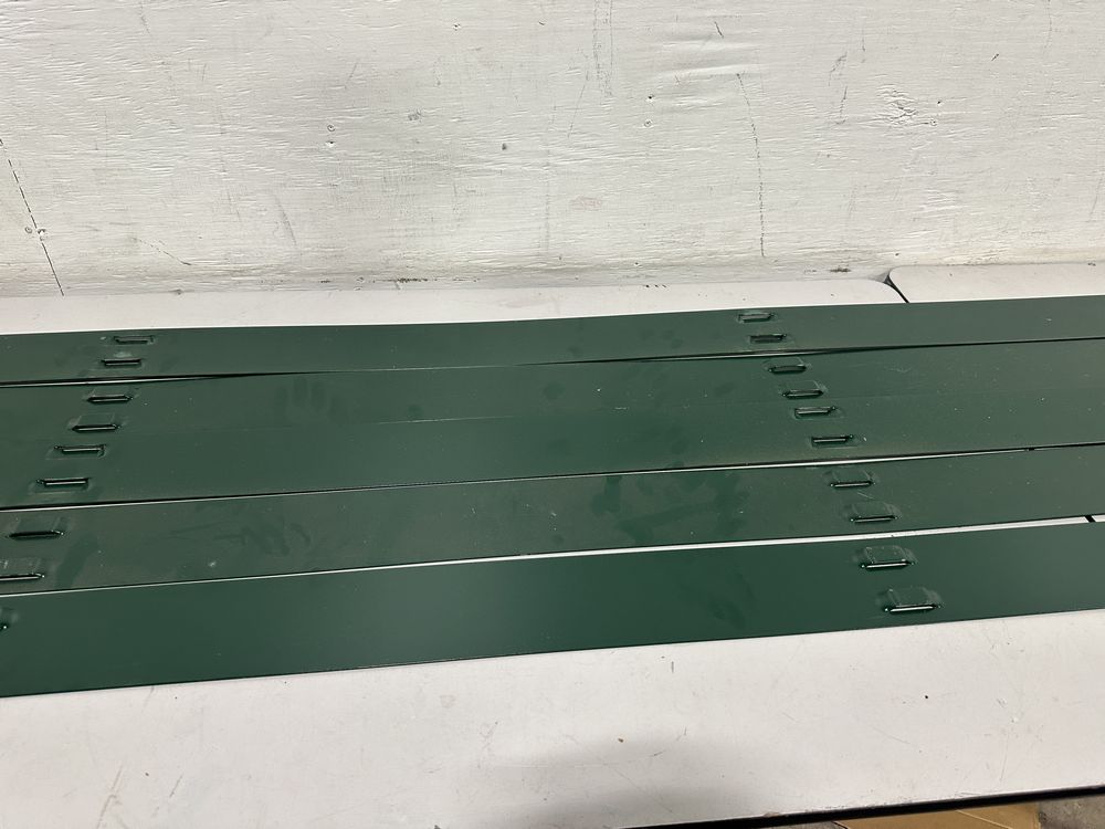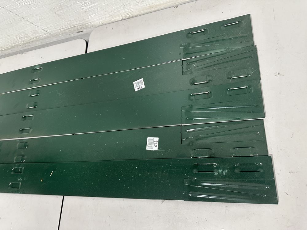Colmet 8' 14-Gauge x 4 in. Green Steel Landscape Edging (5-Pack). Edging only no stakes. Color blends with garden and lawn surroundings or mulch, Powder coated steel helps to prevent rust and corrosion, Panels (sold separately) interlock to create required length,This is a liquidated product. The Auction Company makes no express or implied representations or warranties of any kind regarding the Product. Any pre-existing retail, wholesale or manufacturer warranties will not transfer with the sale of this Product unless expressly stated otherwise on this page. The Buyer accepts the Product in as-is condition, with all faults. Weight: . Sold by: . Sold as: Quantity X Price. Inventory #: