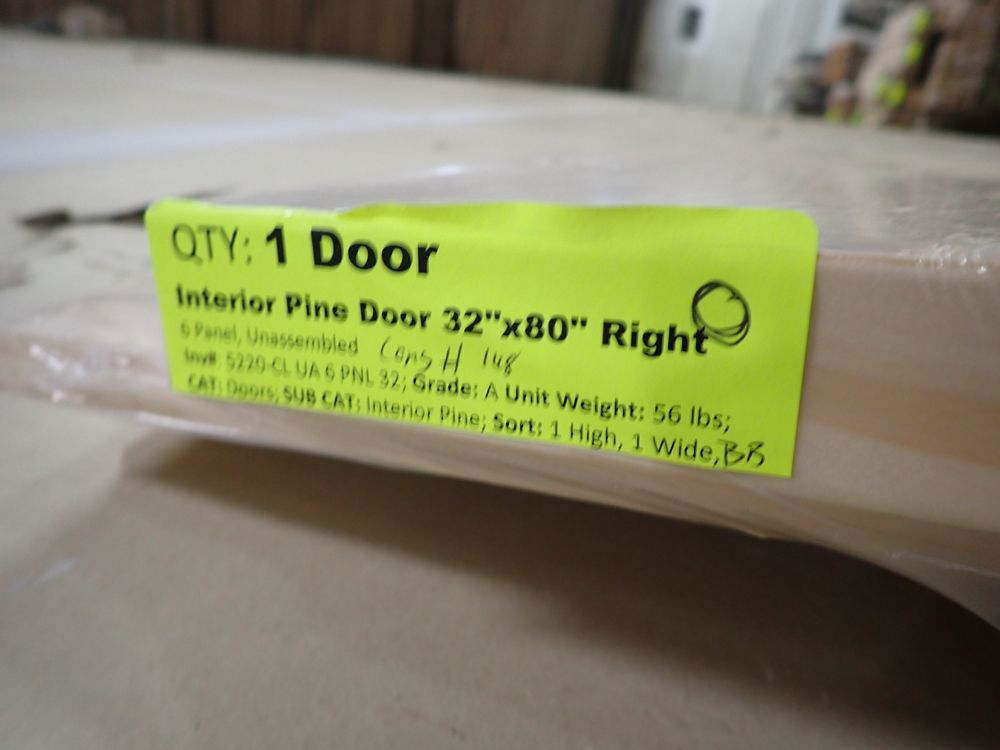 Interior Pine Door 32"x80" 6 PNL RH(Unassembled). Grade: A,This is a liquidated product. The Auction Company makes no express or implied representations or warranties of any kind regarding the Product. Any pre-existing retail, wholesale or manufacturer warranties will not transfer with the sale of this Product unless expressly stated otherwise on this page. The Buyer accepts the Product in as-is condition, with all faults. Weight: x. Sold by: Door. Sold as: Quantity X Price. Inventory #: 5220-CL UA 6 PNL 32 RH