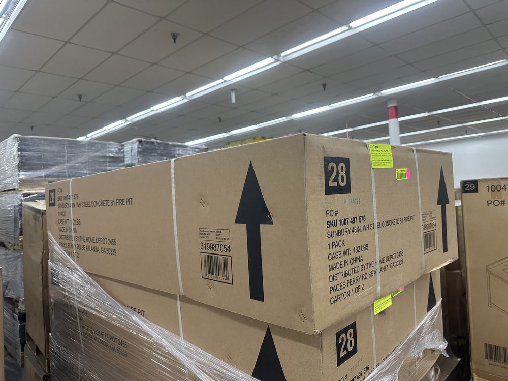 Sunbury White LP Gas Fire Pit. Steel Low Profile Concrete Tile Top, 50,000 BTU, Electric Starter and Safety Shut Off, Dimensions 48 in. L x 17 In. W x 24.4 In. H Grade: New,This is a liquidated product. Any pre-existing retail, wholesale or manufacturer warranties will not transfer with the sale of this Product unless expressly stated otherwise. Weight: 132. Sold by: Piece. Sold as: Quantity X Price. Inventory #: 10112-319987054