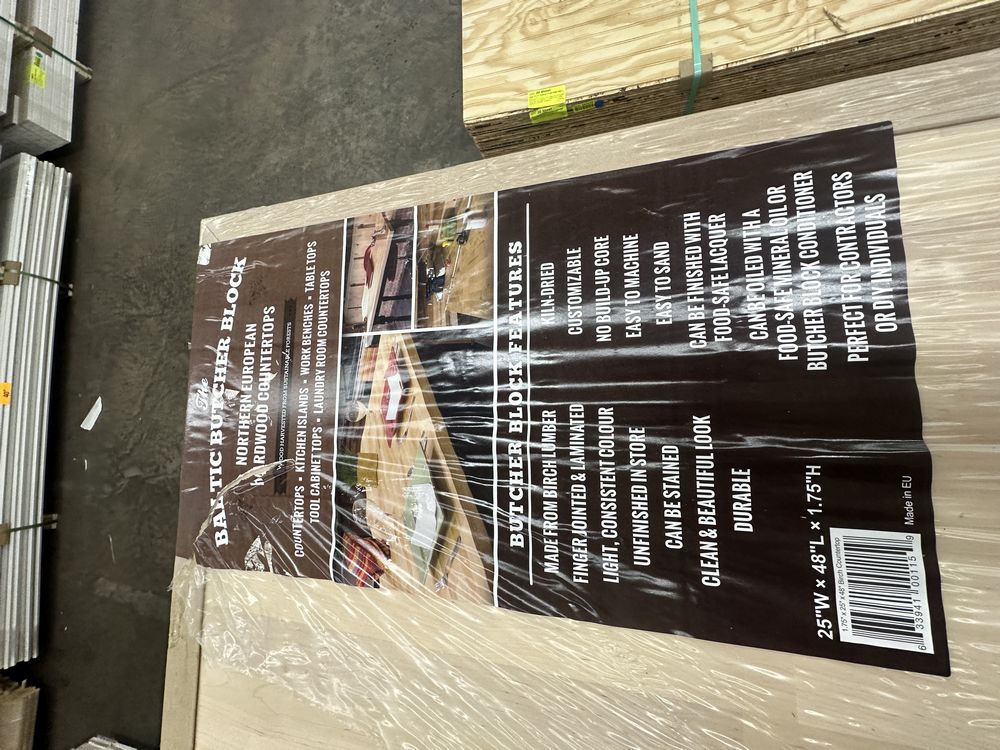 Baltic Birch Hardwood Butcher Block Counter Top 1.75"x25"x48". Grade: A,This is a liquidated product. Any pre-existing retail, wholesale or manufacturer warranties will not transfer with the sale of this Product unless expressly stated otherwise. Weight: x. Sold by: Piece. Sold as: Quantity X Price. Inventory #: 50802-BBBBC 25x48