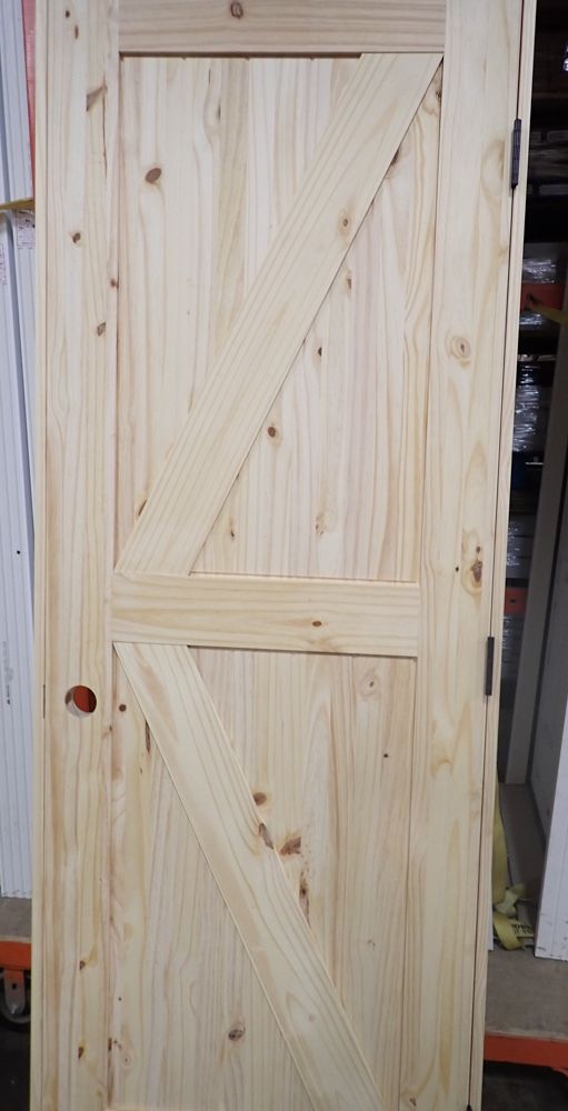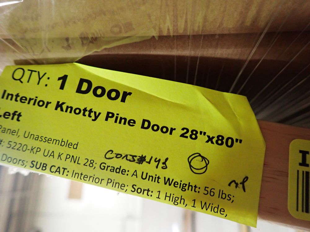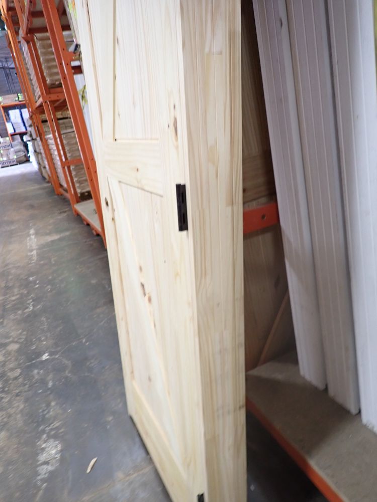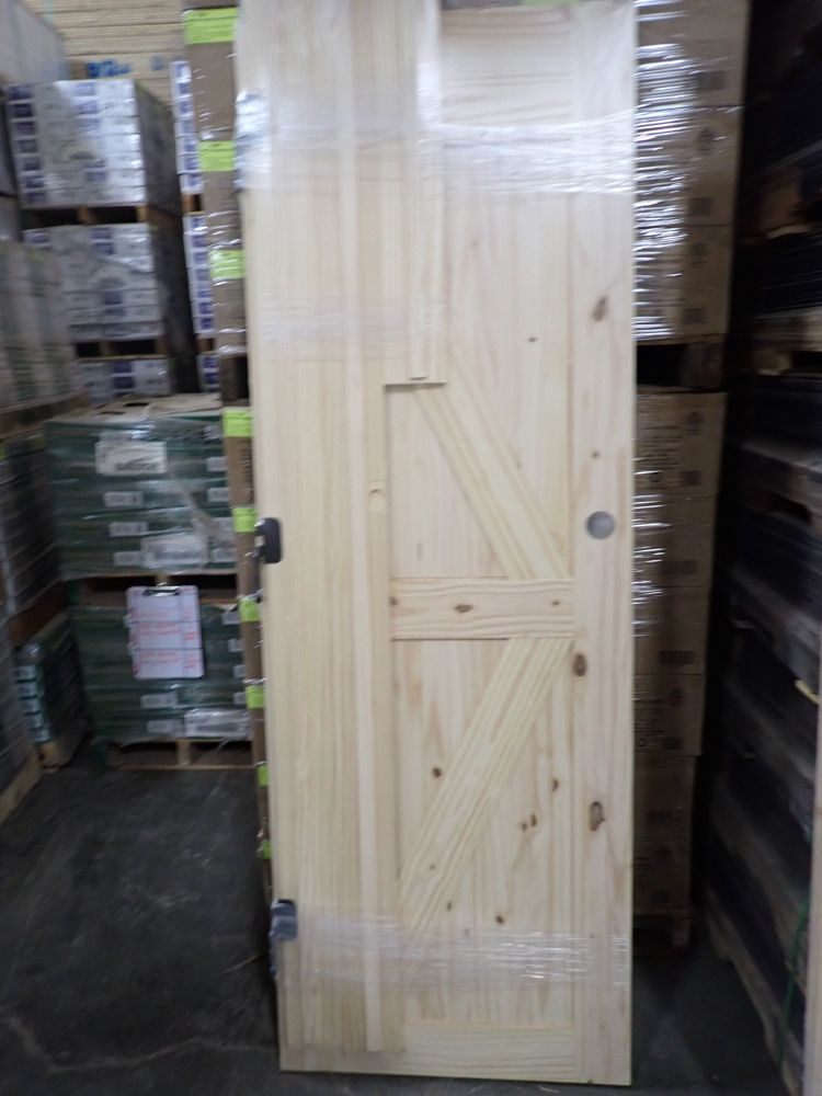 Interior Knotty Pine Barn Door 28"x80" K PNL LH (Unassembled). Grade: A. This is a liquidated product. The Auction Company makes no express or implied representations or warranties of any kind regarding the Product. Any pre-existing retail, wholesale or manufacturer warranties will not transfer with the sale of this Product unless expressly stated otherwise on this page. The Buyer accepts the Product in as-is condition, with all faults. Weight: X. Sold by: Door. Sold as: Quantity X Price. Inventory #: 5220-KP UA BARN DOOR K 28 LH