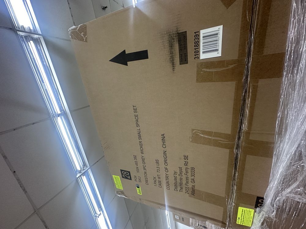 Creston Gray 3 Piece Wicker Square Patio Bistro Set With Tan Cushions. By StyleWell, Contains 2 Metal Chairs with Wicker Accents, Powder Coated Steel Frame, Rust and Weather Resistant, Grade: 1st Quality,This is a liquidated product. Any pre-existing retail, wholesale or manufacturer warranties will not transfer with the sale of this Product unless expressly stated otherwise. Weight: 45. Sold by: Piece. Sold as: Quantity X Price. Inventory #: 10113-310188391