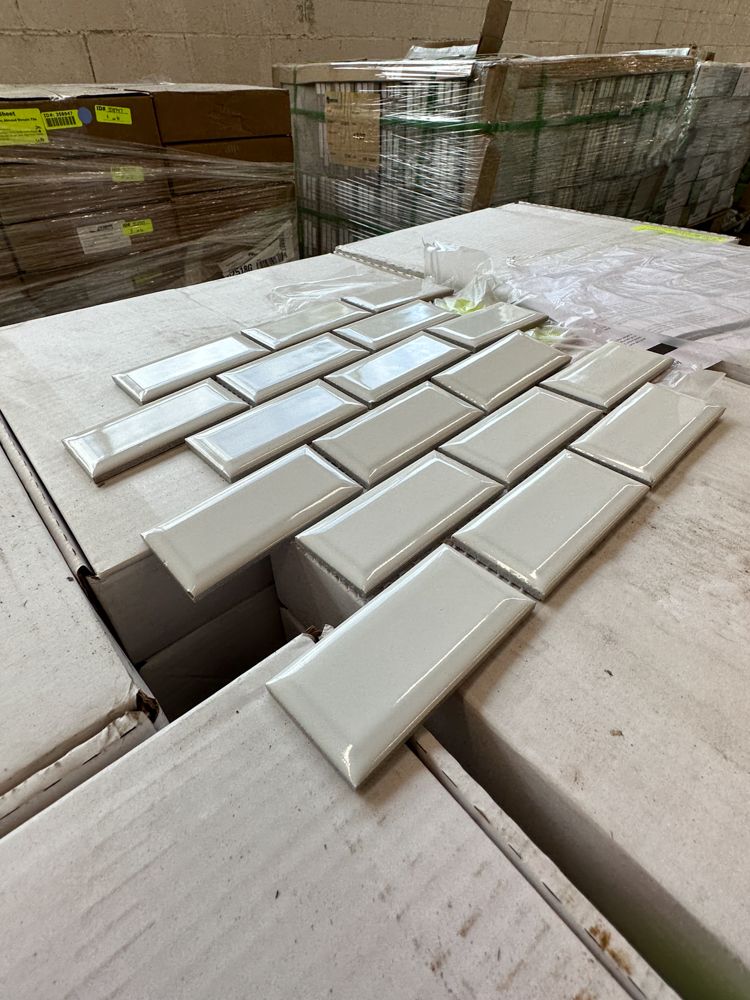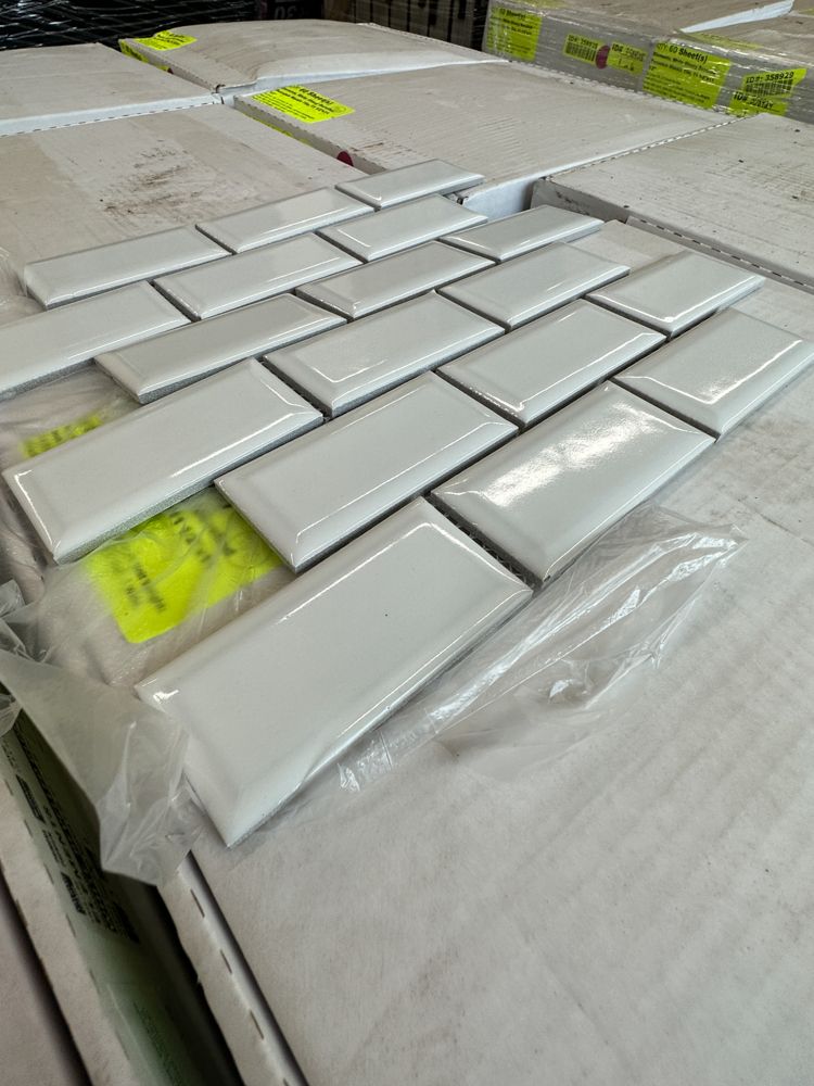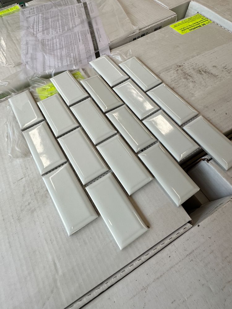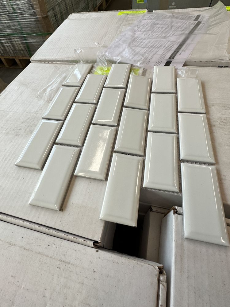 Elements, White Glossy Bevelled Porcelein Mosaic Tile, 11 1/2"x11 1/2". By Lanka Tile, 10 Sheets Per, Grade:Premium,This is a liquidated product. Any pre-existing retail, wholesale or manufacturer warranties will not transfer with the sale of this Product unless expressly stated otherwise. Weight: 24. Sold by: Sheet. Sold as: Quantity X Price. Inventory #: 8512-ELMS WHIT 1216