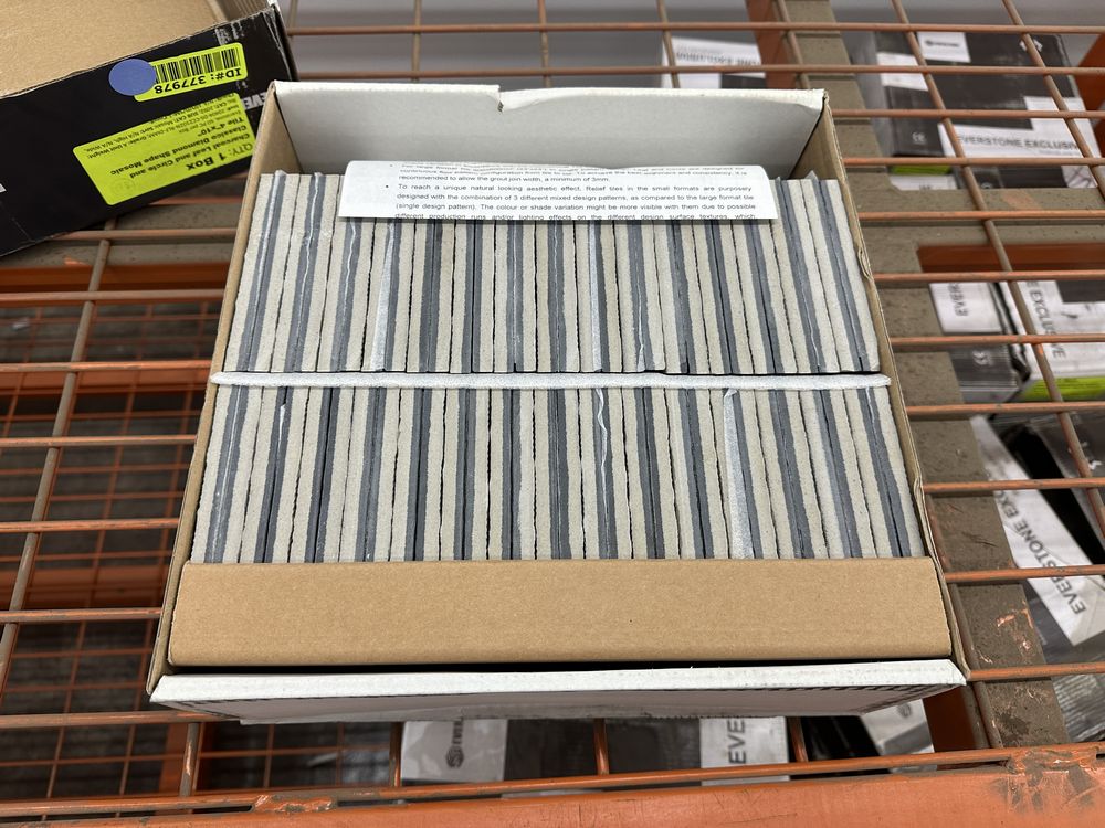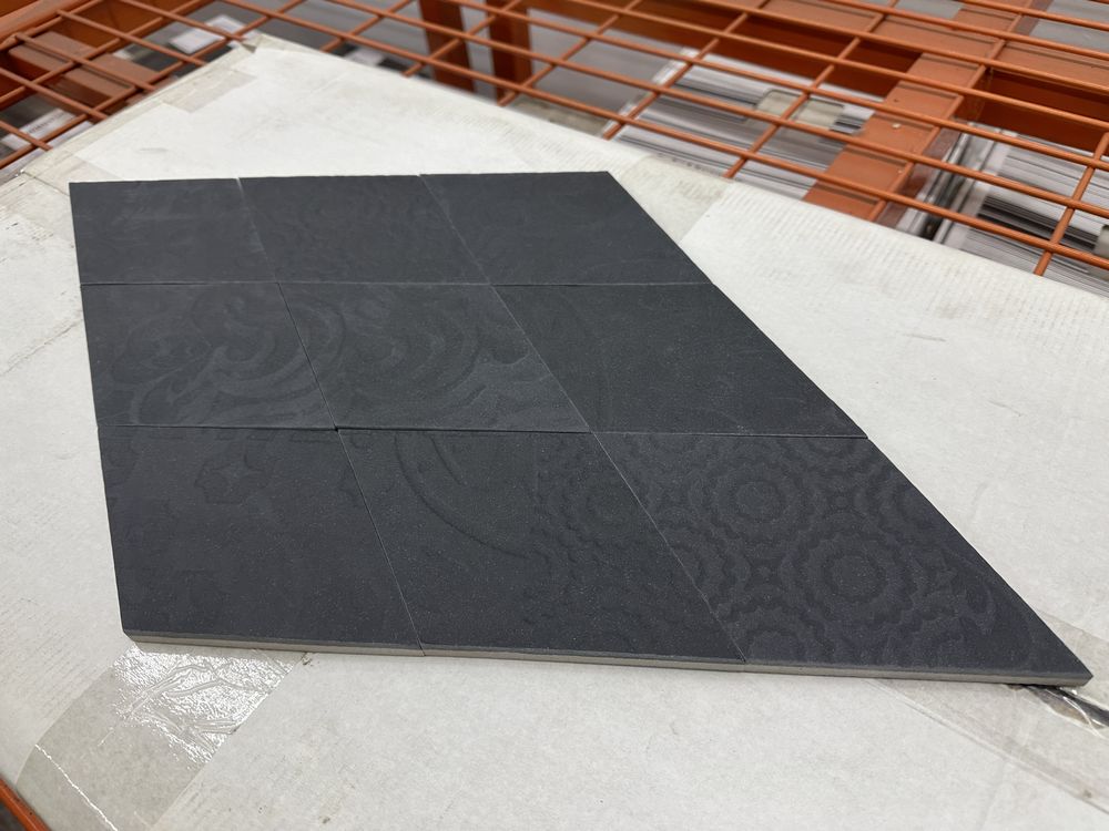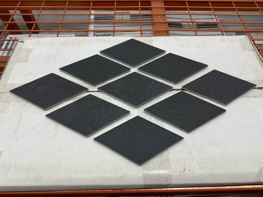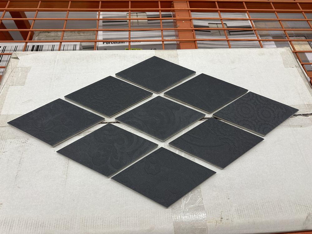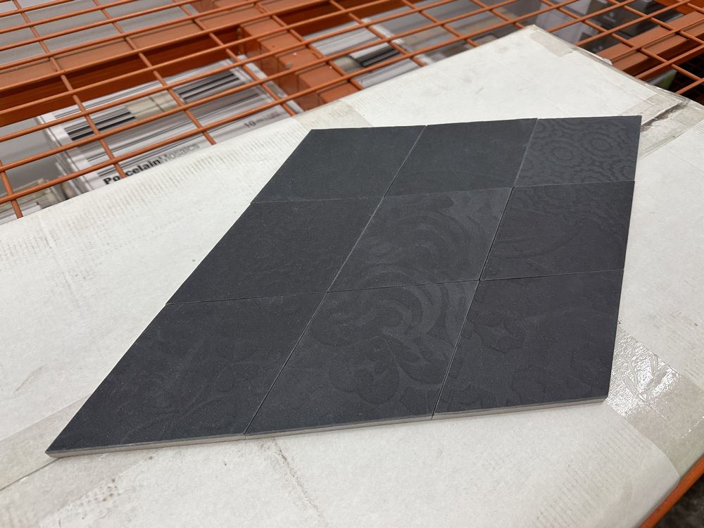 Charcoal Leaf and Circle and Classico Diamond Shape Mosaic Tile 4"x10". Everstone, 6 Boxes, 60 Pieces per box Grade: A,This is a liquidated product. Any pre-existing retail, wholesale or manufacturer warranties will not transfer with the sale of this Product unless expressly stated otherwise. Weight: x. Sold by: Box. Sold as: Quantity X Price. Inventory #: 20404-DS-CC2102N-RLF-DIAM