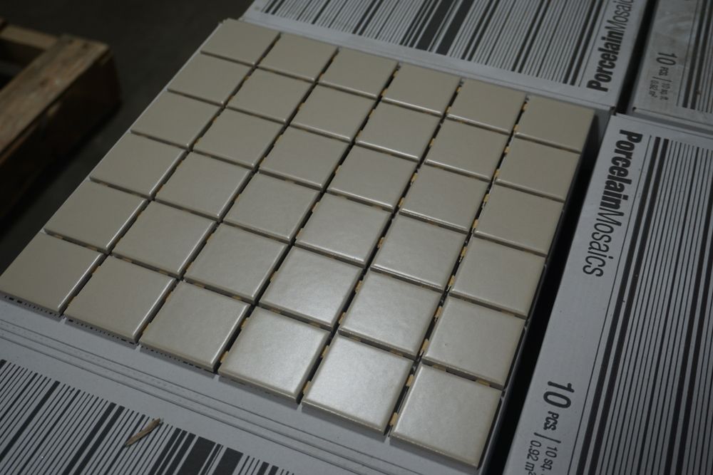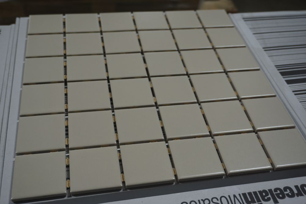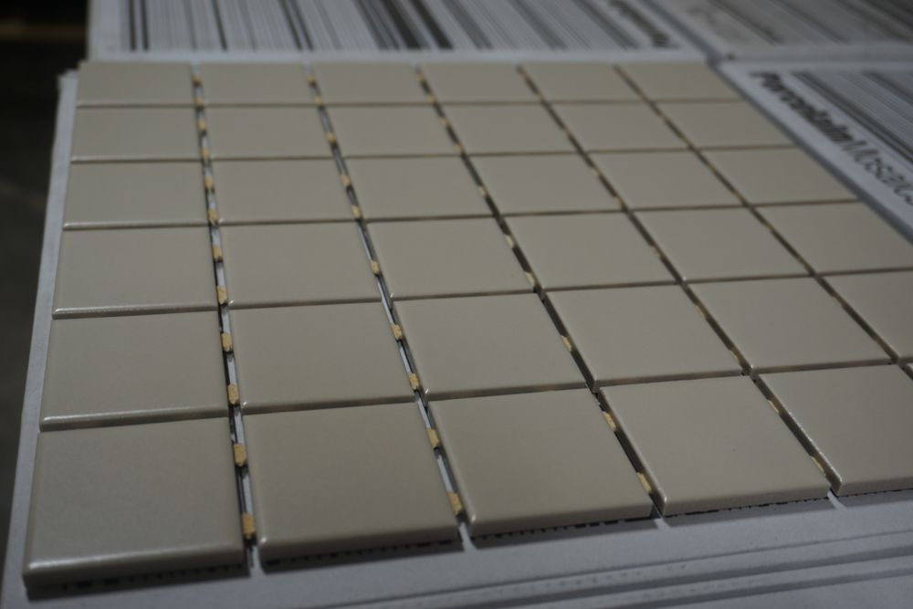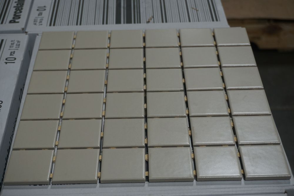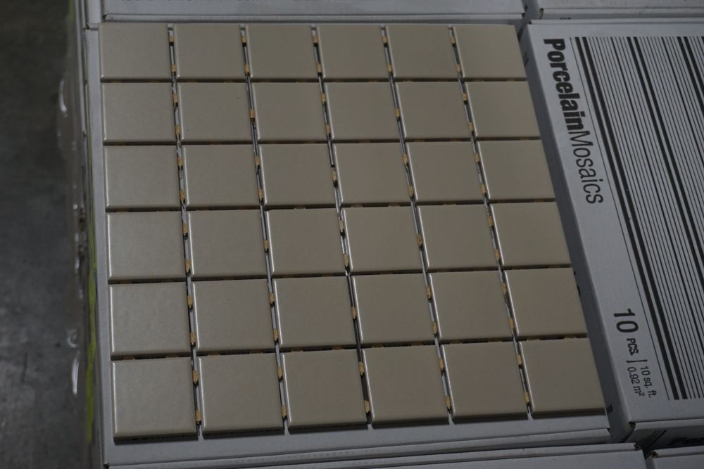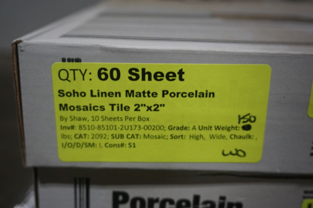 Soho Linen Matte Porcelain Mosaics Tile 2" x 2". By Shaw, 10 Sheets per Box, Grade A This is a liquidated product. Any pre-existing retail, wholesale or manufacturer warranties will not transfer with the sale of this Product unless expressly stated otherwise. Weight: 150 lbs.. Sold by: Sheet. Sold as: Quantity X Price. Inventory #: 8510-85101-2U173-00200