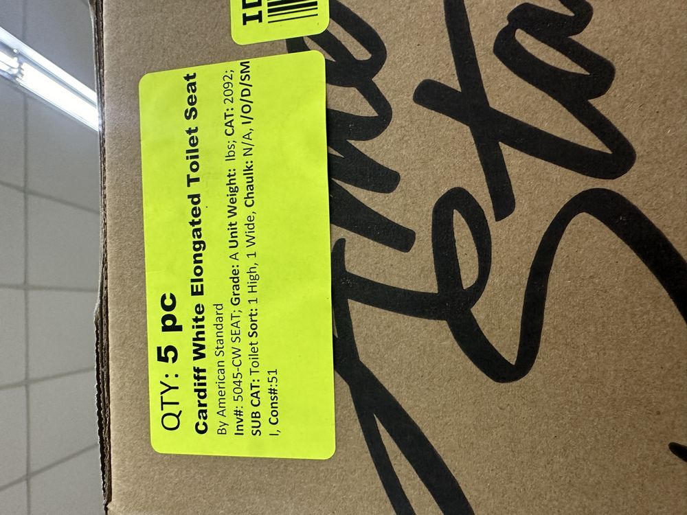 Cardiff White Elongated Toilet Seat. By, American Standard Grade: A,This is a liquidated product. Any pre-existing retail, wholesale or manufacturer warranties will not transfer with the sale of this Product unless expressly stated otherwise. Weight: x. Sold by: Piece. Sold as: Quantity X Price. Inventory #: 5045-CW SEAT