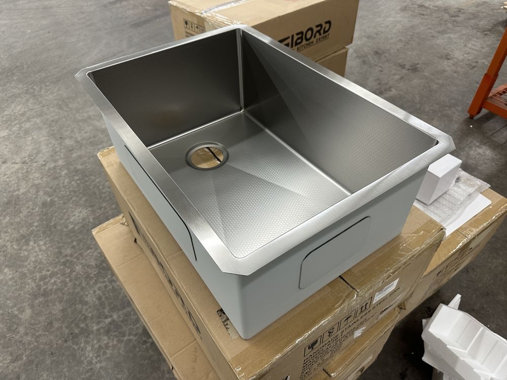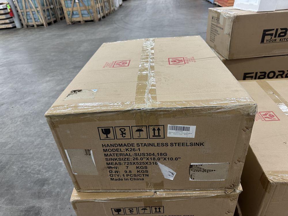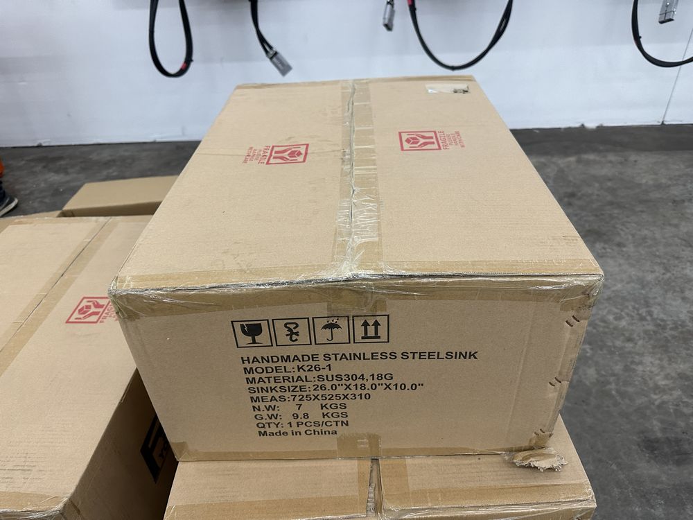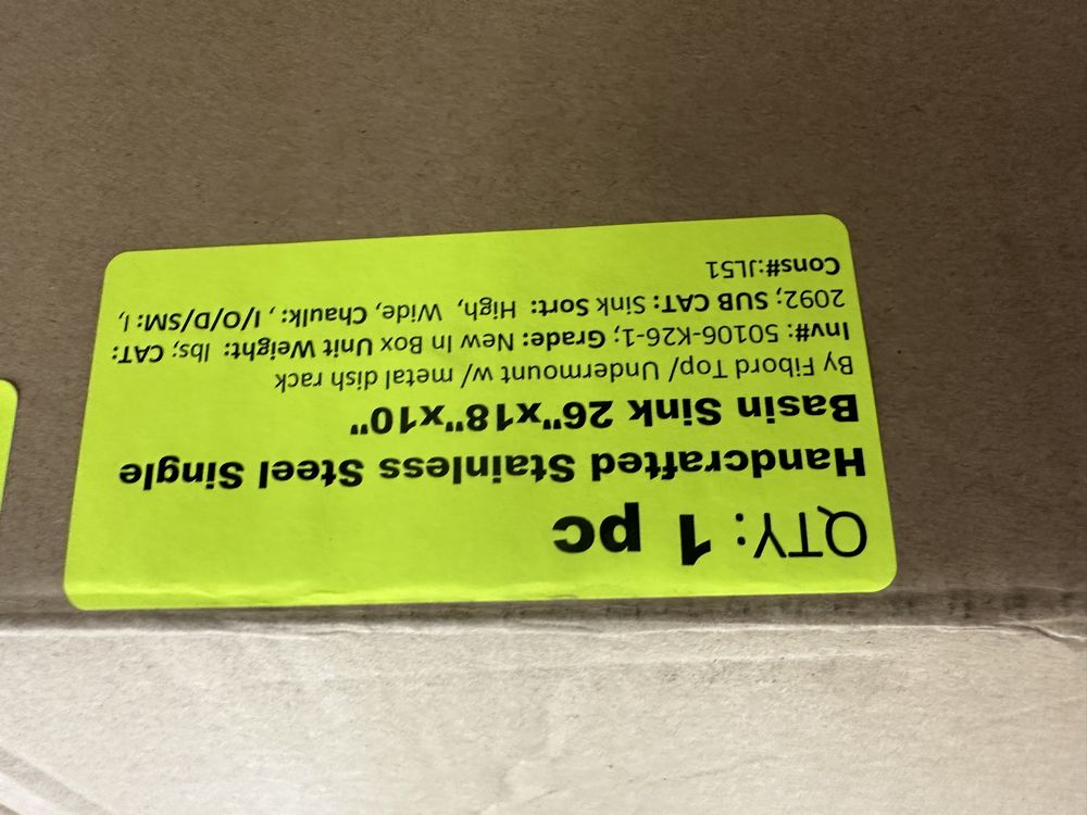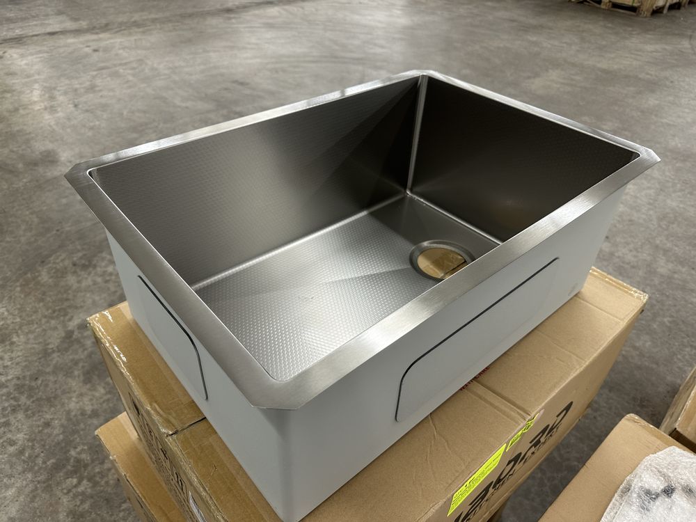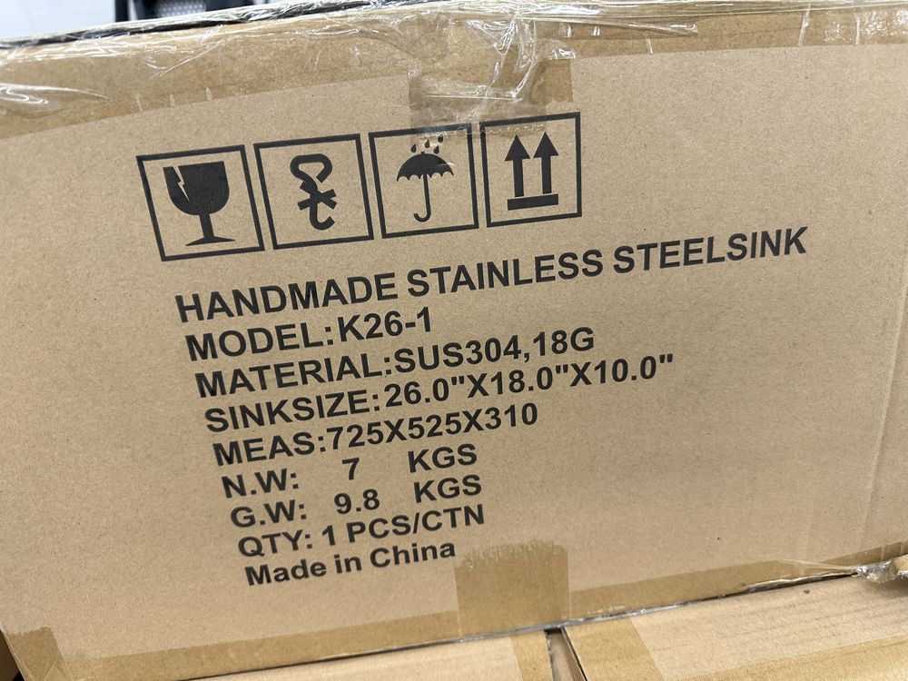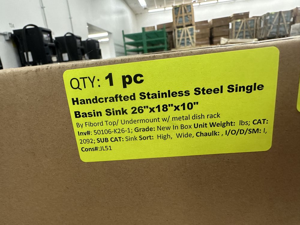 Handcrafted Stainless Steel Single Basin Sink 26"x18"x10". By Fibord Top/ Undermount w/ Metal Dish Rack Grade: New in box,This is a liquidated product. Any pre-existing retail, wholesale or manufacturer warranties will not transfer with the sale of this Product unless expressly stated otherwise. Weight: x. Sold by: Piece. Sold as: Quantity X Price. Inventory #: 50106-K26-1