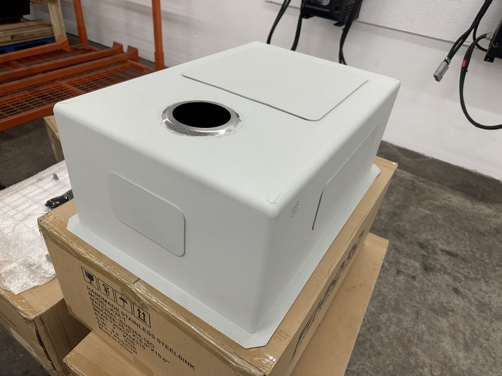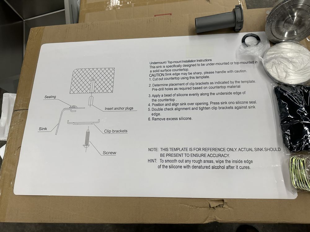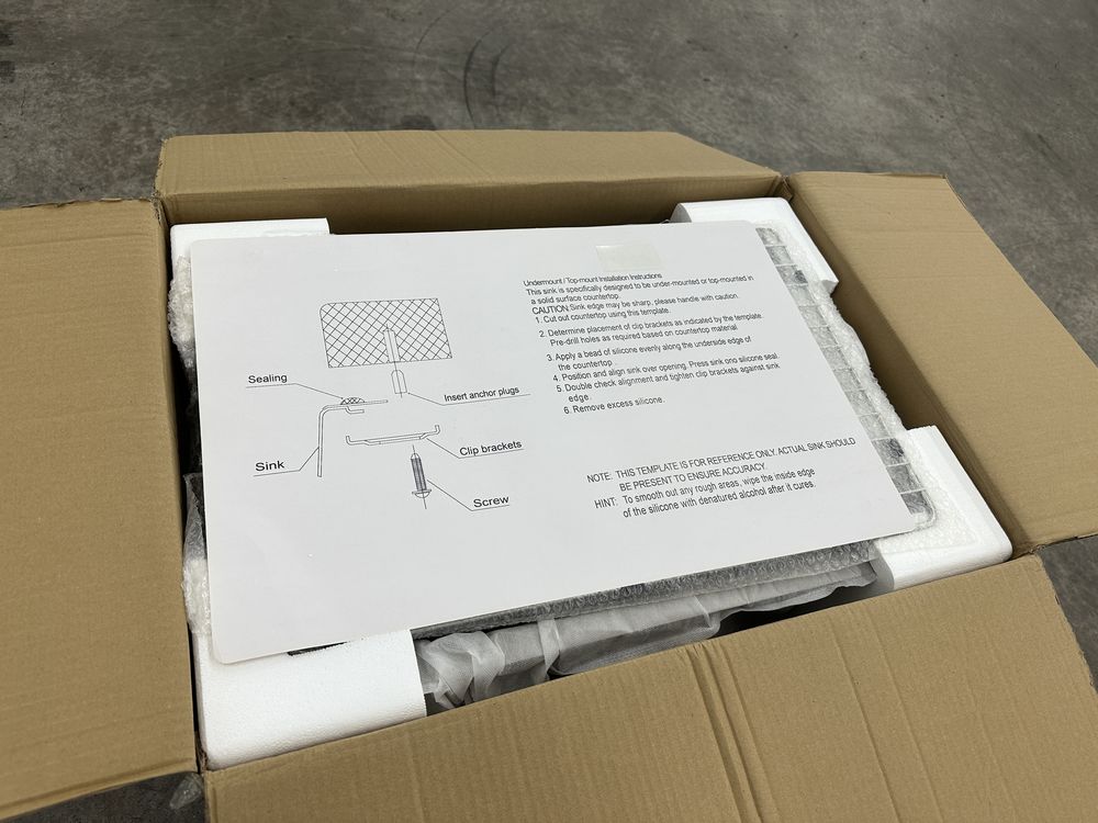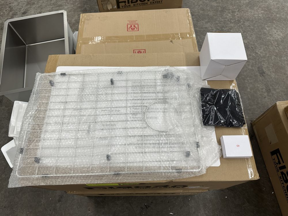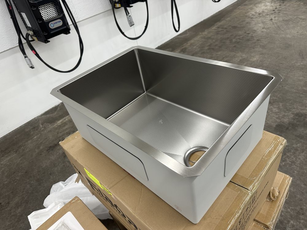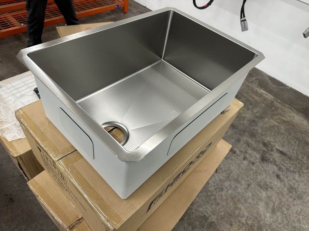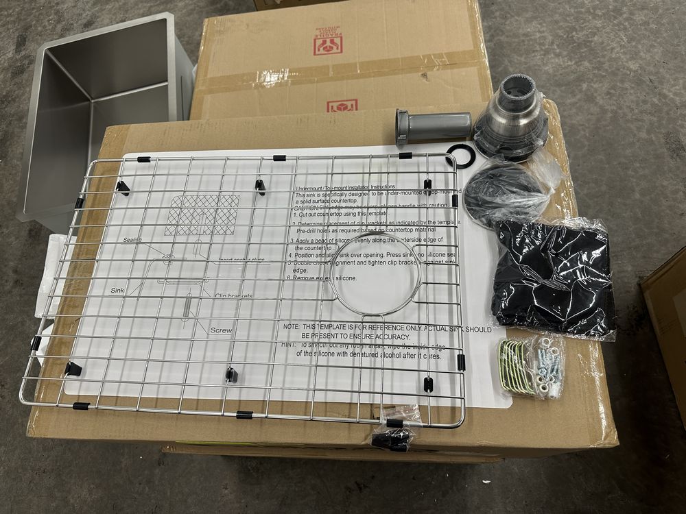Handcrafted Stainless Steel Single Basin Sink 26"x18"x10". By Fibord Top/ Undermount w/ Metal Dish Rack Grade: New in box,This is a liquidated product. Any pre-existing retail, wholesale or manufacturer warranties will not transfer with the sale of this Product unless expressly stated otherwise. Weight: x. Sold by: Piece. Sold as: Quantity X Price. Inventory #: 50106-K26-1