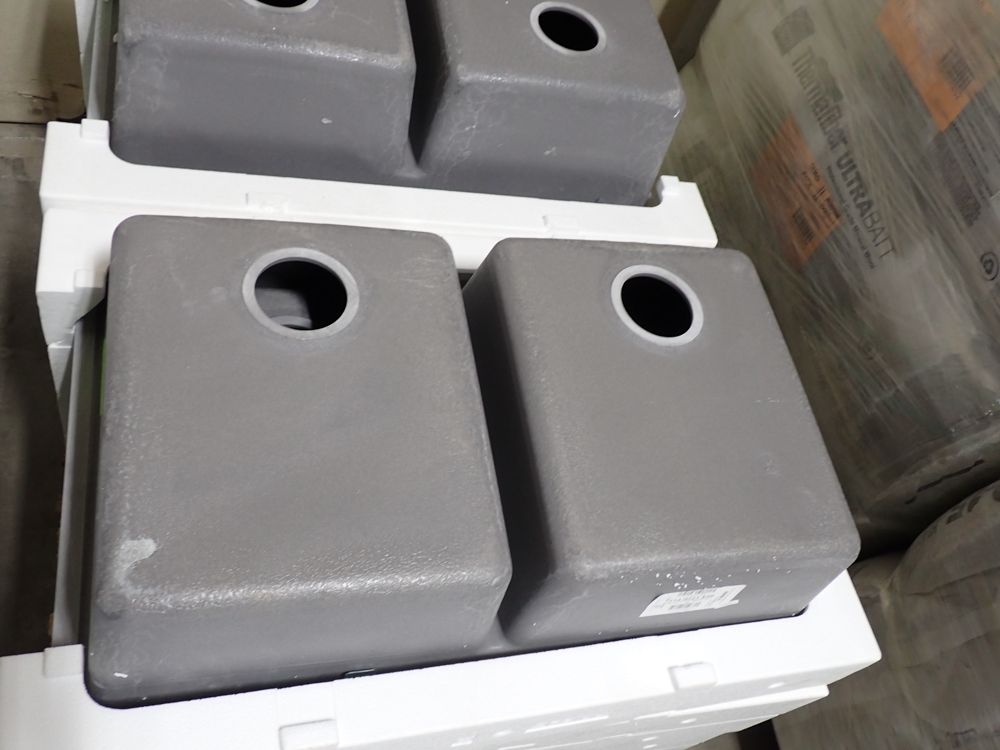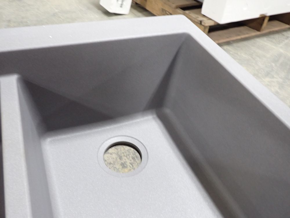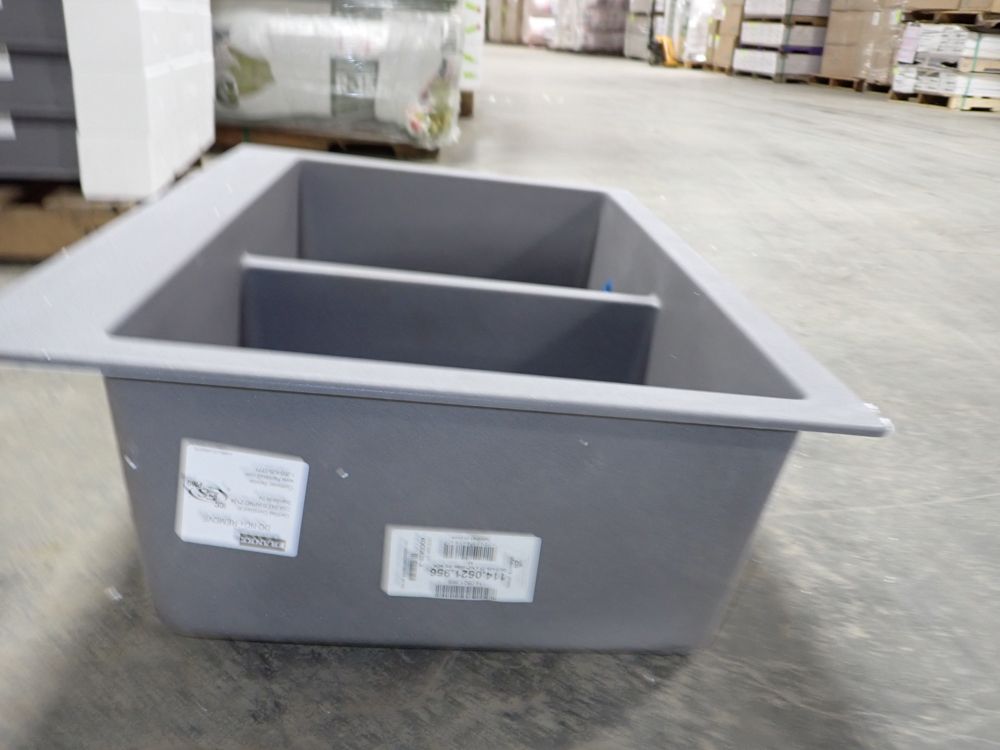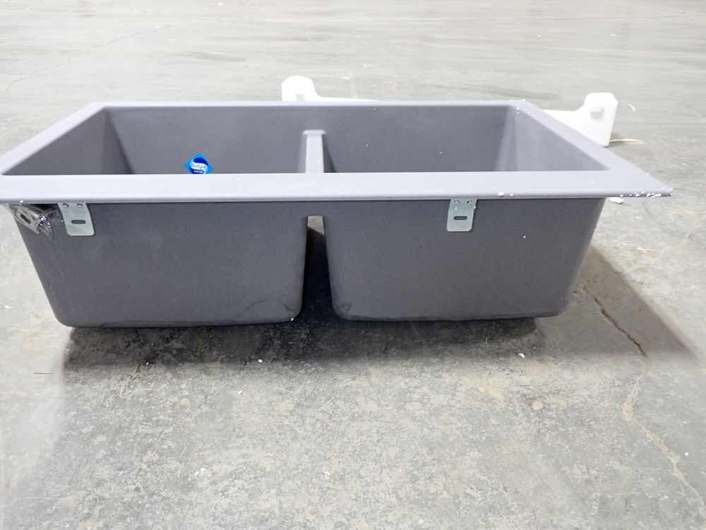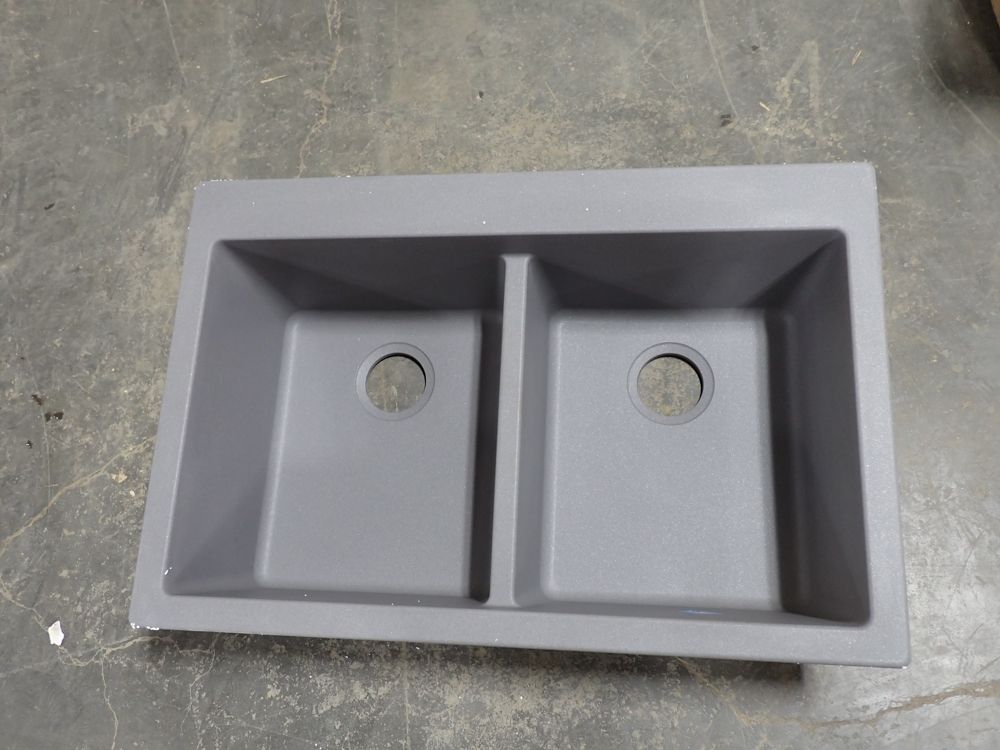 Shadow Grey Double Bowl Drop-In Sink 22"x33"x9". By Franke, Powdered Granite, rough opening dimensions 20 1/4"x31 1/2", Comes with bit for faucet holes. Grade: New This is a liquidated product. Any pre-existing retail, wholesale or manufacturer warranties will not transfer with the sale of this Product unless expressly stated otherwise. Weight: 35 lbs.. Sold by: Piece. Sold as: Quantity X Price. Inventory #: 5016-956