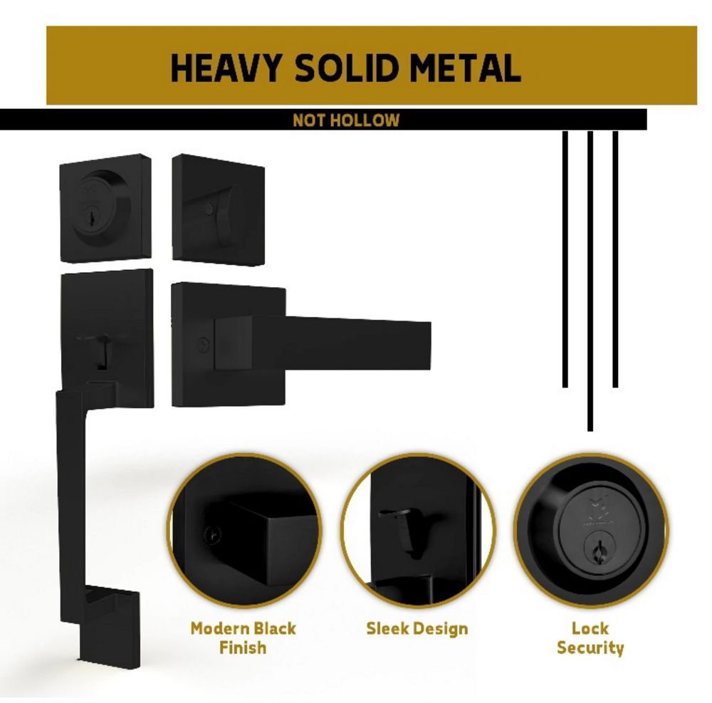 Matte Black Entrance Handleset. By Mega, Comes with Door Lever, Handle, and Deadbolt Lock, Grade: A.,This is a liquidated product. No warranties are expressed or implied Weight: 5. Sold by: Piece. Sold as: Quantity X Price. Inventory #: 5412-75613