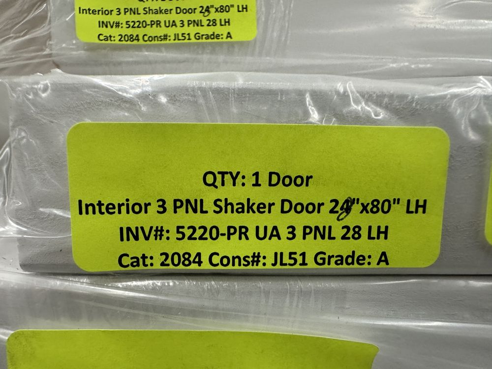 Interior 3 PNL Shaker Door 28"x80" LH (Unassembled). Grade: A,This is a liquidated product. The Auction Company makes no express or implied representations or warranties of any kind regarding the Product. Any pre-existing retail, wholesale or manufacturer warranties will not transfer with the sale of this Product unless expressly stated otherwise on this page. The Buyer accepts the Product in as-is condition, with all faults. Weight: x. Sold by: Door. Sold as: Quantity X Price. Inventory #: 5220-PR UA 3 PNL 28 LH