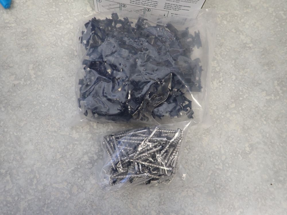 Hidden Decking Fasteners. By Fiberon, Stainless Steel with Corrosion Resistant Coating, Dual Limiting Tabs for Consistent Spacing, Includes 80 line,10 butt joint fasteners, 95 screws, and 1 driver bit per box, 2 boxes, Grade: New.,This is a liquidated product. No warranties are expressed or implied Weight: 3.7. Sold by: Box. Sold as: Quantity X Price. Inventory #: 11012-BOX-0001G