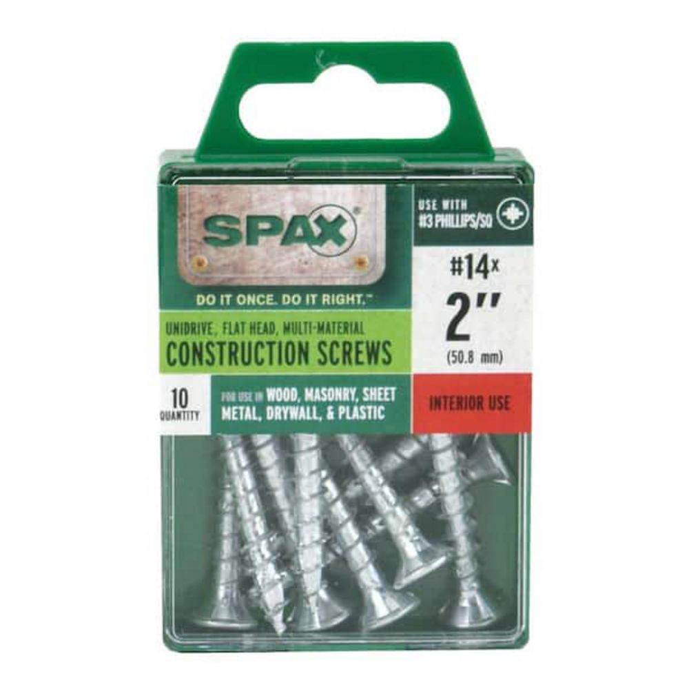Zinc Interior Multi-Material Screws #14x2". Unidrive Flat Head 10 Boxes of 10 pieces per case, Grade A,This is a liquidated product. No warranties are expressed or implied Weight: 8. Sold by: Case. Sold as: Quantity X Price. Inventory #: 12011-18793