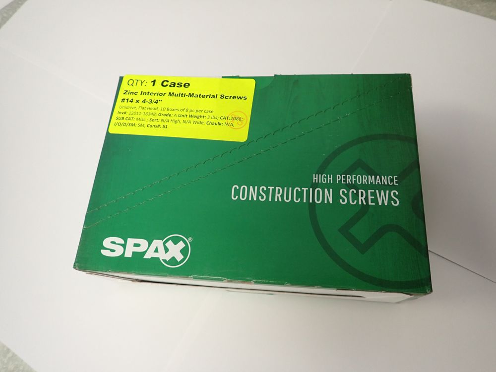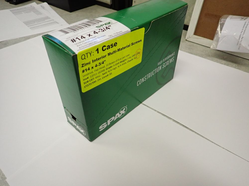 Zinc Interior Multi-Material Screws #14x4-3/4". Unidrive, Flat Head, 10 Boxes of 8 Piece Per Case Grade: A,This is a liquidated product. No warranties are expressed or implied Weight: 3. Sold by: Case. Sold as: Quantity X Price. Inventory #: 12011-16348