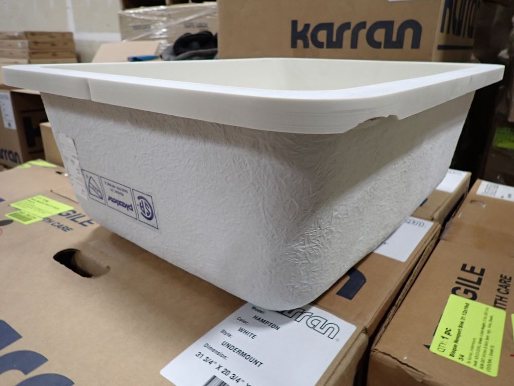 Bisque Madrid Sink 22 3/4"x18 1/8"x8 1/2". By Karran, Undermount, Grade: A,This is a liquidated product. Any pre-existing retail, wholesale or manufacturer warranties will not transfer with the sale of this Product unless expressly stated otherwise. Weight: 15. Sold by: Piece. Sold as: Quantity X Price. Inventory #: 50510-02063