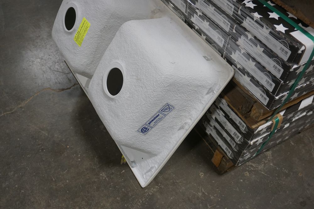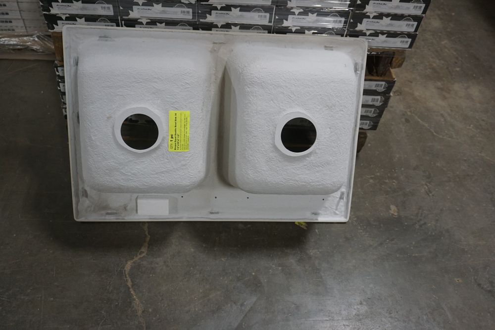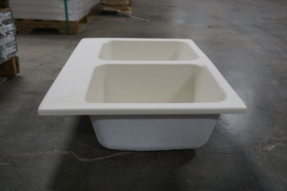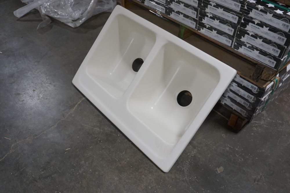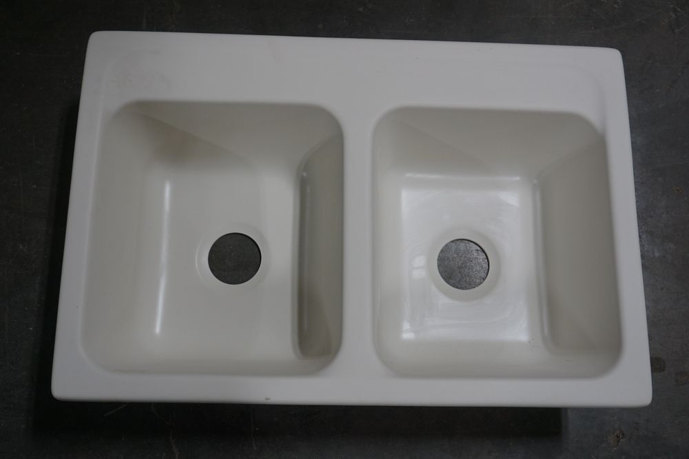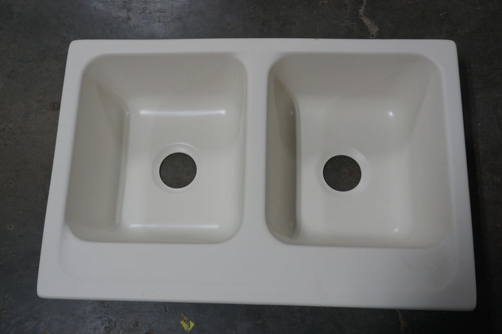 Bisque Equal Double Bowl Sink 30 1/2"x16"x7 1/2". By Plexicor, Bowl 1-14"x16"x7 1/2" Bowl 2-14"x16"x7 1/2" With Clips Grade: A,This is a liquidated product. Any pre-existing retail, wholesale or manufacturer warranties will not transfer with the sale of this Product unless expressly stated otherwise. Weight: x. Sold by: Piece. Sold as: Quantity X Price. Inventory #: 50511-E2957