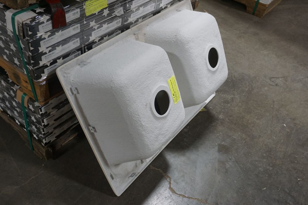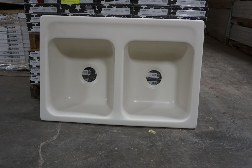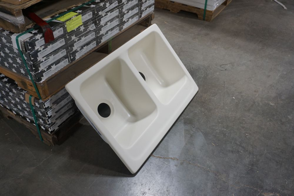 Double Plain Offset 60/40 White 33"x18"x10". By IPT Sinks Company 9" Bowl Depth Glazed Finish Comes With 38mm Stepped Weir, Grade: New,This is a liquidated product. Any pre-existing retail, wholesale or manufacturer warranties will not transfer with the sale of this Product unless expressly stated otherwise. Weight: 125. Sold by: Piece. Sold as: Quantity X Price. Inventory #: 5056-AP6040PLN