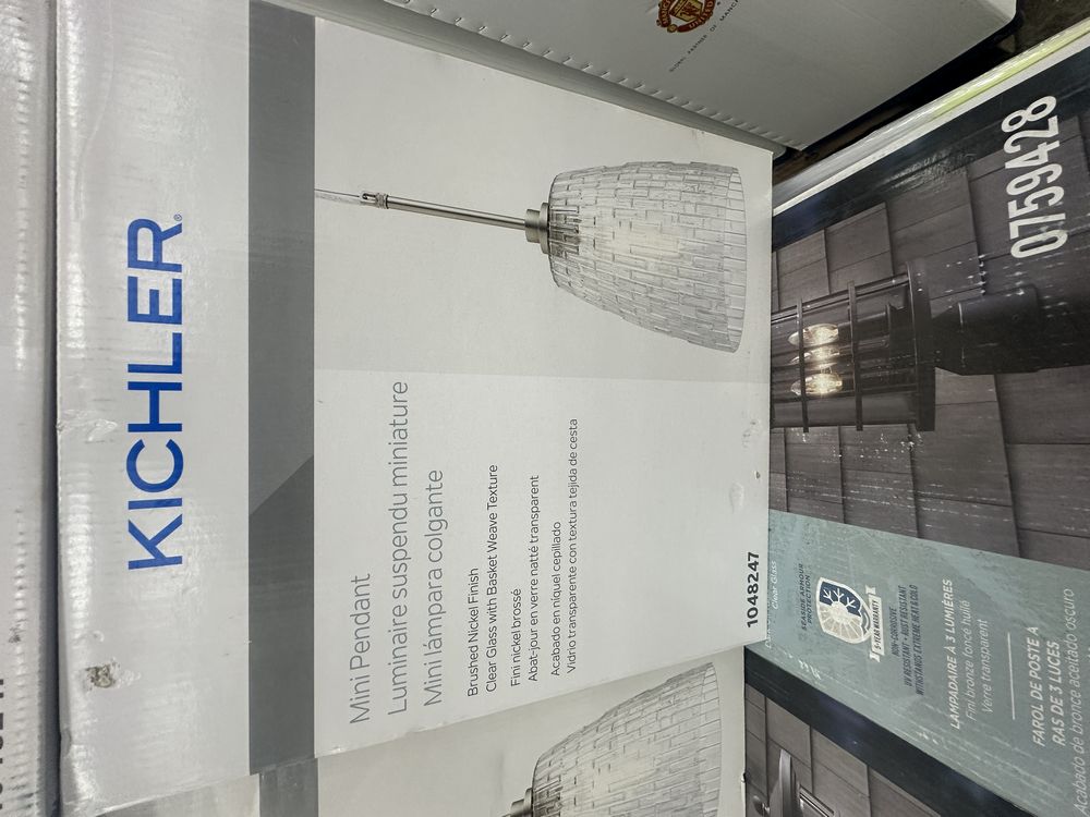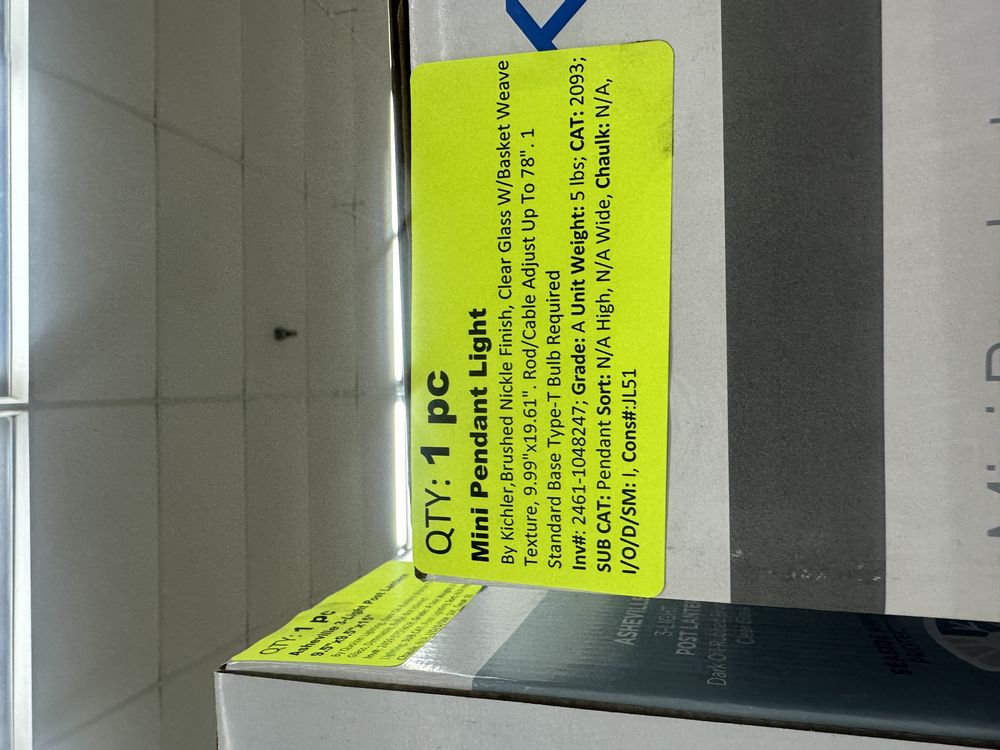 Mini Pendant Light. By Kichler, Brushed Nickel Finish, Clear Glass w/ Basket Weave Texture, 9.9"x19.61, Rod/Cable Adjust up to 78", 1 Standard Base Type-T Bulb Required, Grade: A,This is a liquidated product. Any pre-existing retail, wholesale or manufacturer warranties will not transfer with the sale of this Product unless expressly stated otherwise. Weight: 5. Sold by: Piece. Sold as: Quantity X Price. Inventory #: 2461-1048247