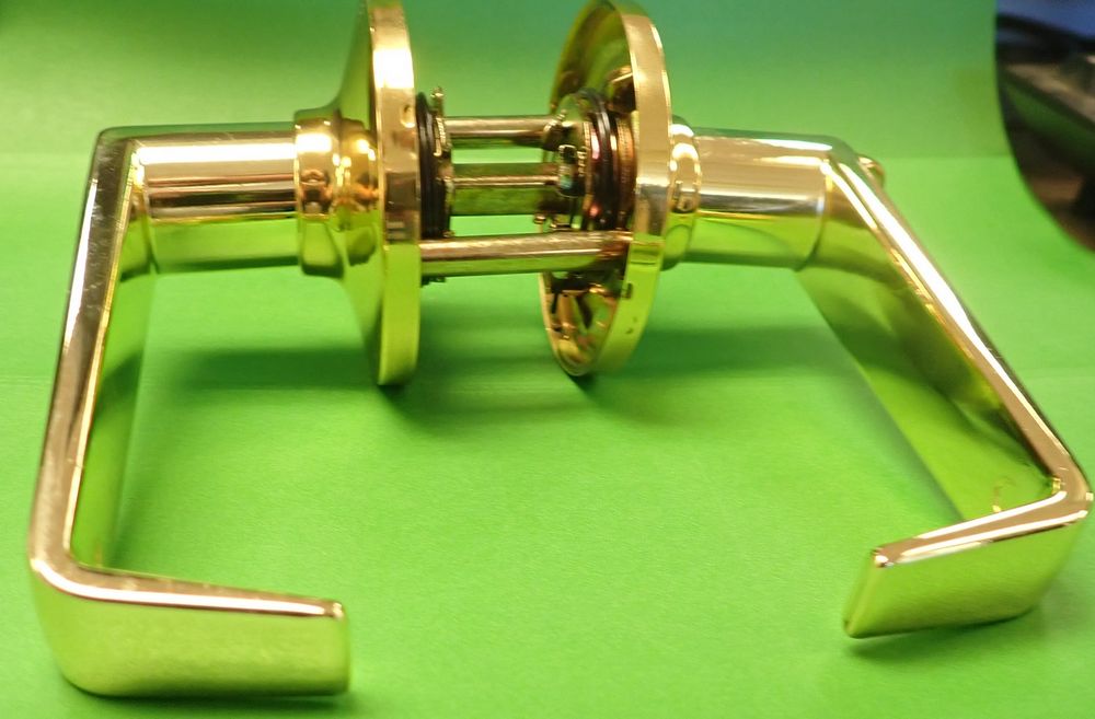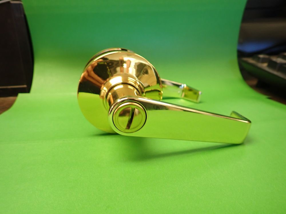 Privacy Lock Lever. Polished Brass Privacy Lock Lever, 2 3/8" and 2 3/4" Backset, For Doors 1 3/8"-1 3/4", Turnbutton Locking Inisde, Panic Release Outside, Grade A. This is a liquidated product. No warranties are expressed or implied Weight: 1lbs.. Sold by: Piece. Sold as: Quantity X Price. Inventory #: 5411-Privacy