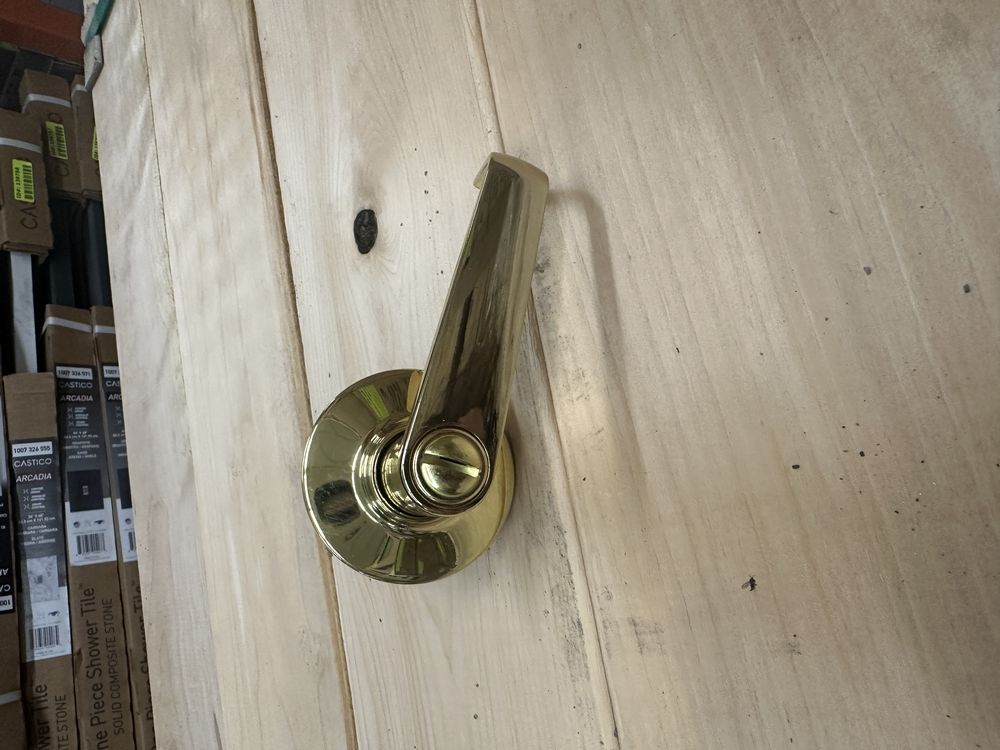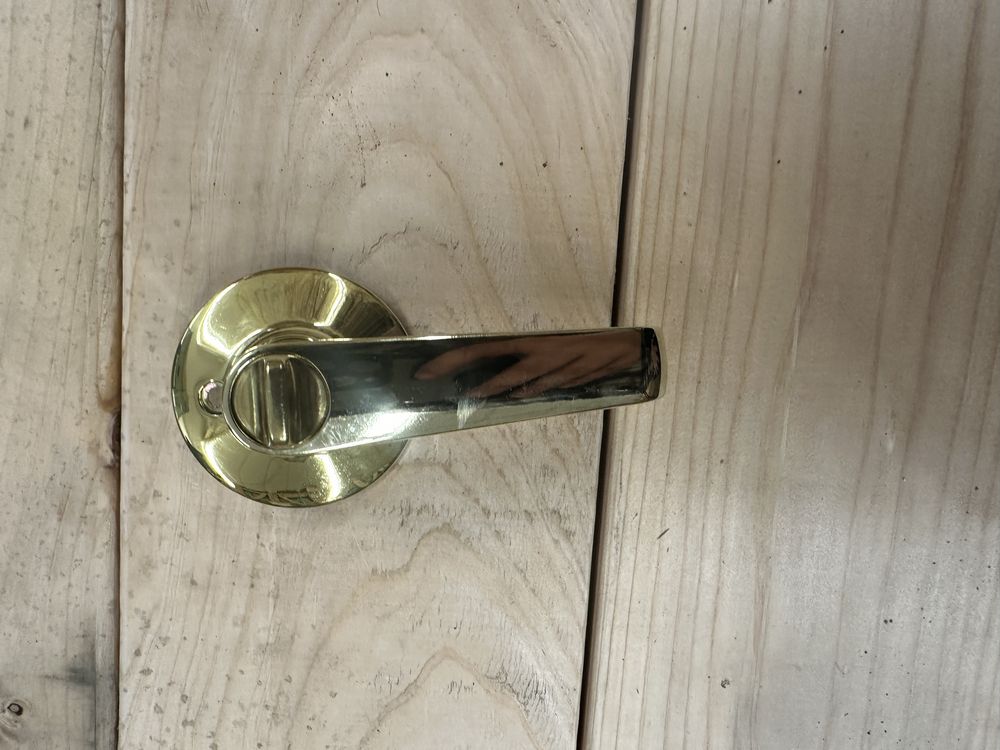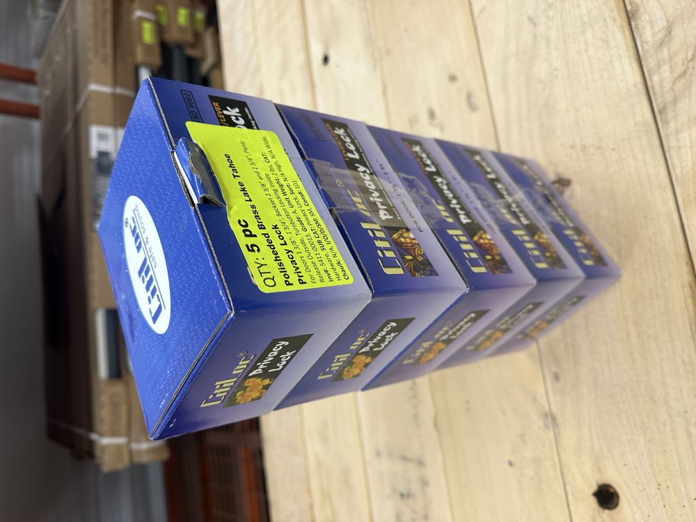 Polished Brass Lake Tahoe Privacy Lock. For Doors 1 3/8" - 1 3/4", Backset 2 3/8" and 2 3/4", Panic Release Outside, Turn Button Locking Inside, Grade: A,This is a liquidated product. No warranties are expressed or implied Weight: 2. Sold by: Piece. Sold as: Quantity X Price. Inventory #: 5411-Privacy