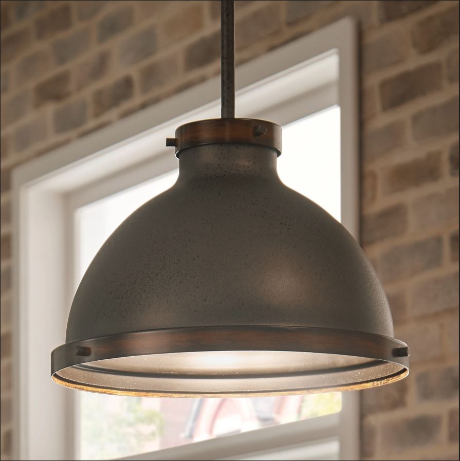 Single Light Textured Ceramic Pendant Light. By Kichler, Aged Faux Wood Trim, 13"x9.4", With 12" Rod and 24" Chain, Requires 1 Medium Base Type A Bulb, Grade: A,This is a liquidated product. Any pre-existing retail, wholesale or manufacturer warranties will not transfer with the sale of this Product unless expressly stated otherwise. Weight: 7. Sold by: Piece. Sold as: Quantity X Price. Inventory #: 2461-1048250