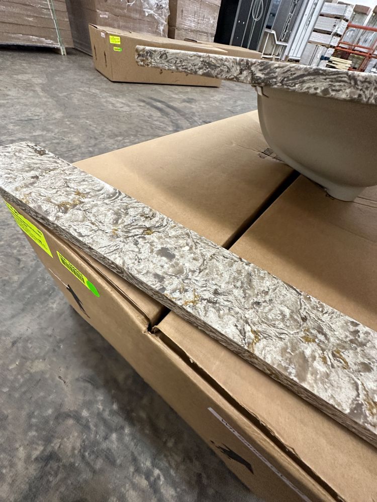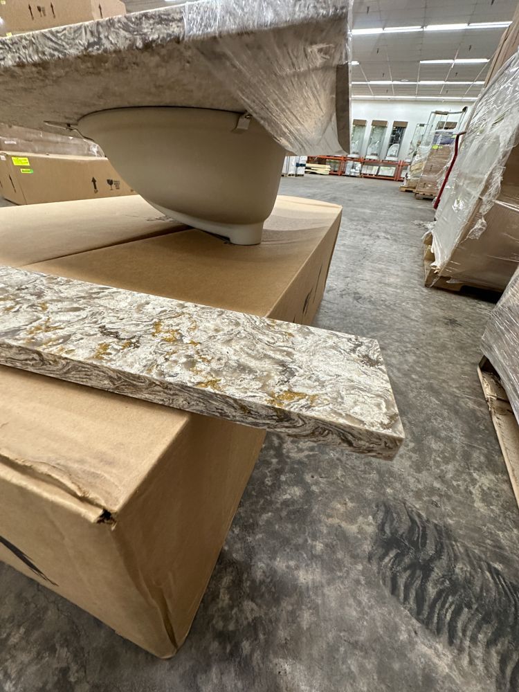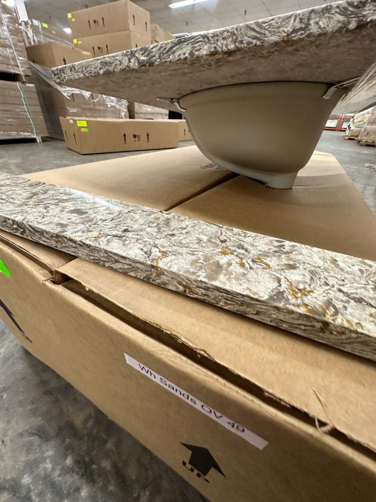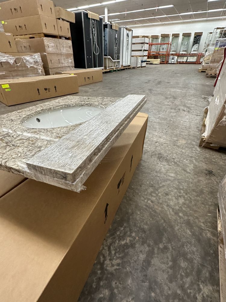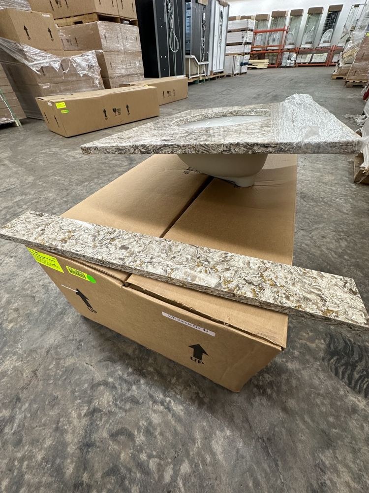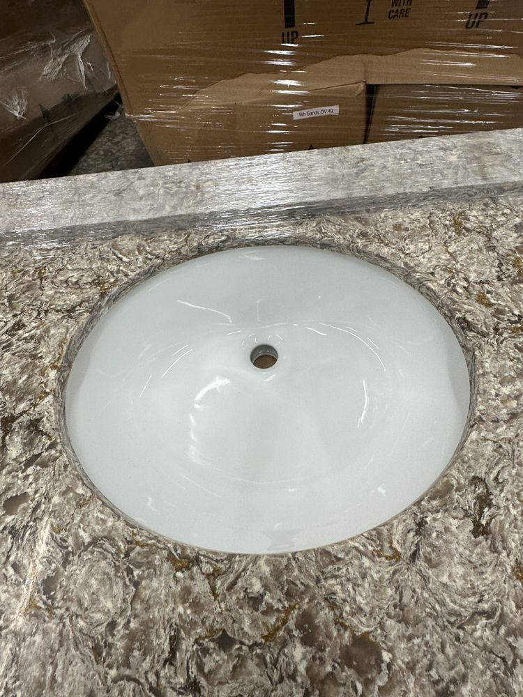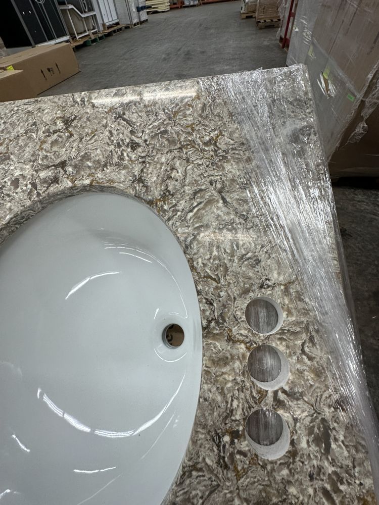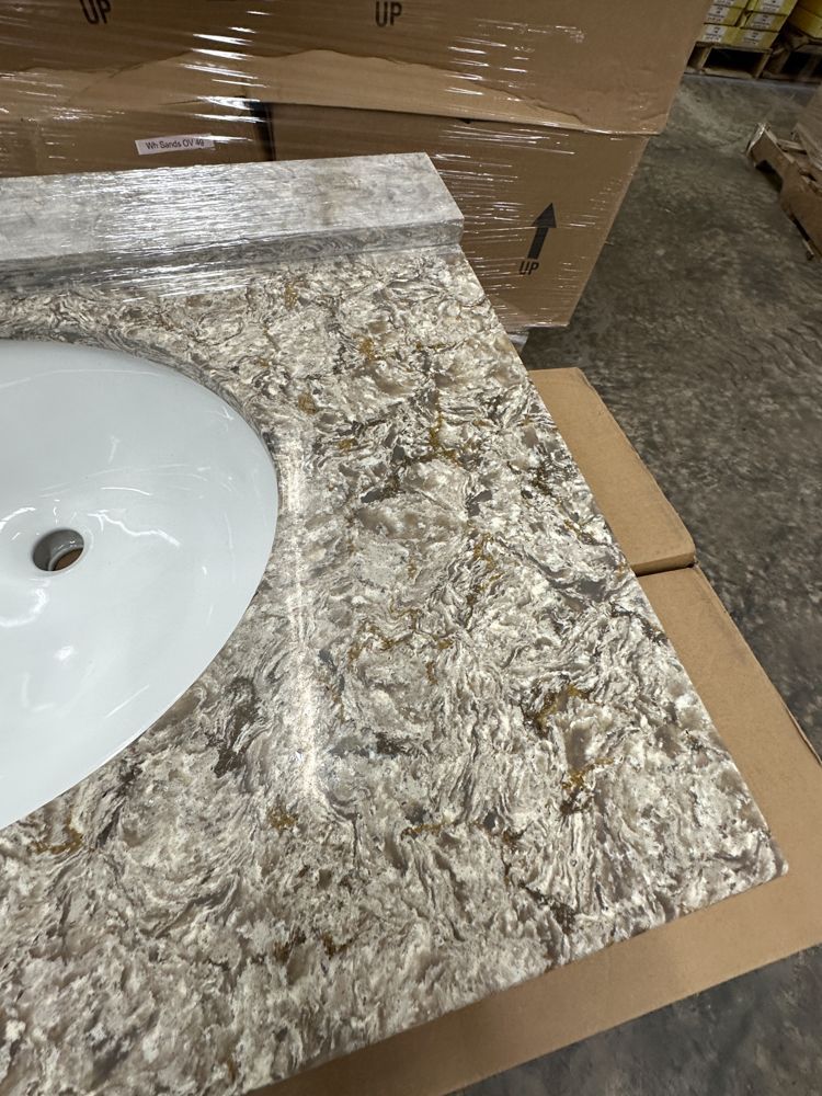 Callisto Single Bowl Granite Vanity Top 31"x22". Drop In With Backsplash, Oval Bowl, Grade: A,This is a liquidated product. Any pre-existing retail, wholesale or manufacturer warranties will not transfer with the sale of this Product unless expressly stated otherwise. Weight: 85. Sold by: Piece. Sold as: Quantity X Price. Inventory #: 5021-CO 31x22