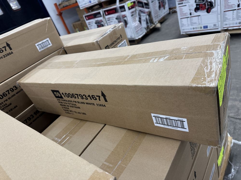 White 2" Cordless Room-Darkening Faux Window Blinds 23"x64". By Home Decorators, 2 Piece Per Box, Hardware Included, Grade: A,This is a liquidated product. Any pre-existing retail, wholesale or manufacturer warranties will not transfer with the sale of this Product unless expressly stated otherwise. Weight: 16. Sold by: Piece. Sold as: Quantity X Price. Inventory #: 61120-1006793167