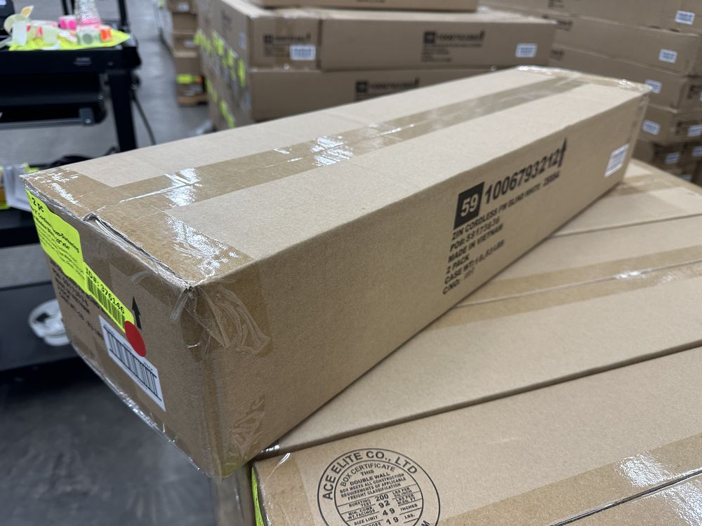 White 2" Cordless Room-Darkening Faux Window Blinds 29"x64". By Home Decorators, 2 PC per Box, Hardware included. Grade: A,This is a liquidated product. Any pre-existing retail, wholesale or manufacturer warranties will not transfer with the sale of this Product unless expressly stated otherwise. Weight: 19. Sold by: Piece. Sold as: Quantity X Price. Inventory #: 61120-1006793212