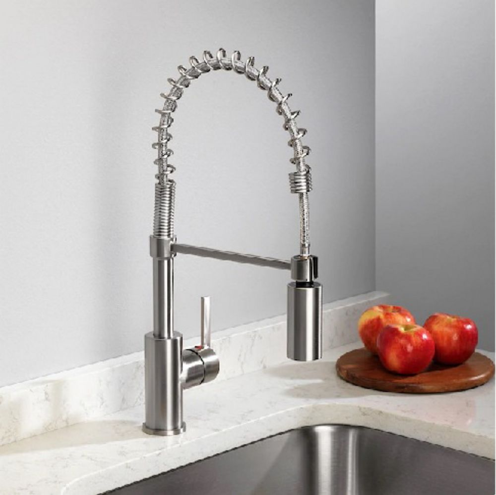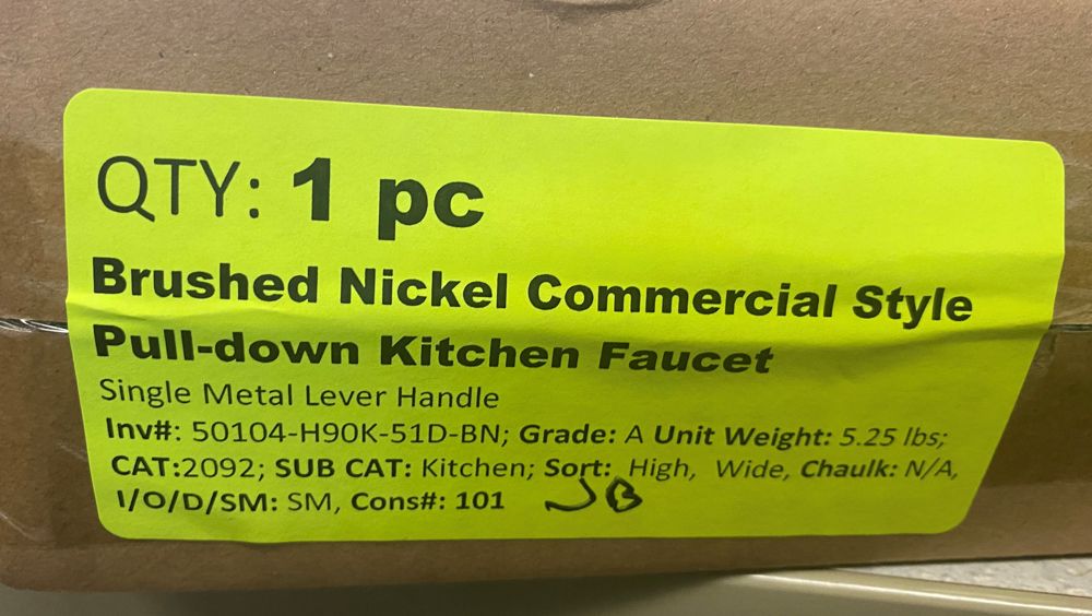 Brushed Nickel Commercial Style Pull-down Faucet. Single Metal Lever Handle Grade:A,This is a liquidated product. Any pre-existing retail, wholesale or manufacturer warranties will not transfer with the sale of this Product unless expressly stated otherwise. Weight: 5.25. Sold by: Piece. Sold as: Quantity X Price. Inventory #: 50104-H90K 51D-BN