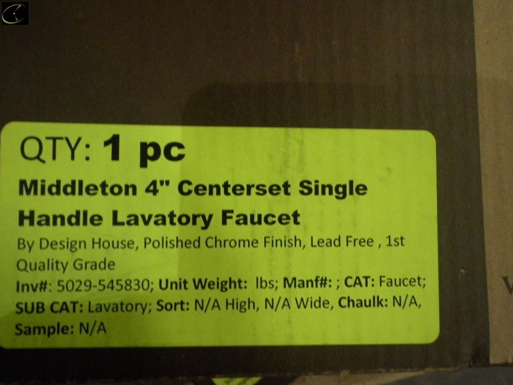 Middleton 4" Centerset Single Handle Lavatory Faucet. By Design House, Polished Chrome Finish, Lead Free, Grade 1st Quality,This is a liquidated product. Any pre-existing retail, wholesale or manufacturer warranties will not transfer with the sale of this Product unless expressly stated otherwise. Weight: X. Sold by: Piece. Sold as: Quantity X Price. Inventory #: 5029-545830