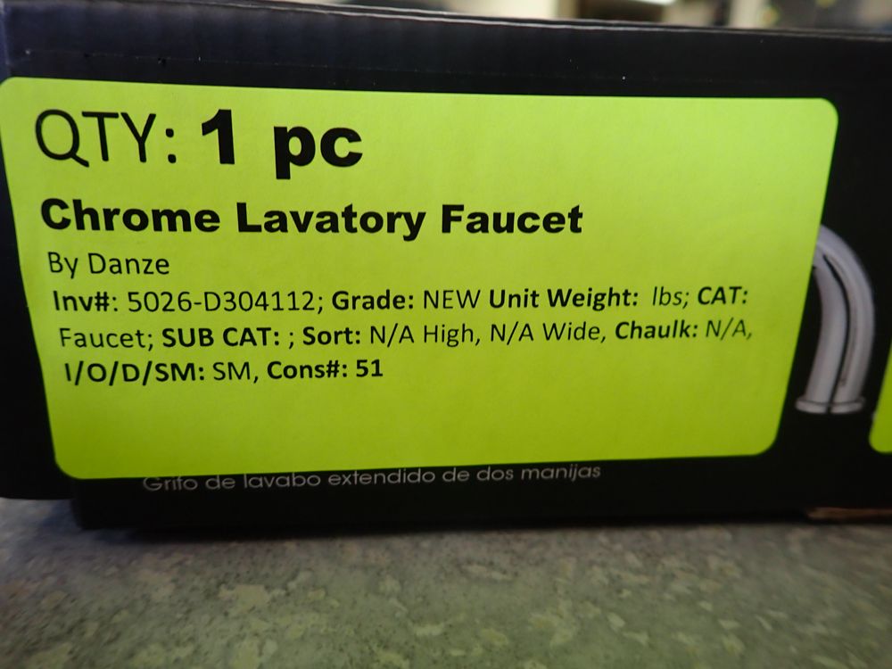 Chrome Lavatory Faucet. By Danze, Grade: New,This is a liquidated product. Any pre-existing retail, wholesale or manufacturer warranties will not transfer with the sale of this Product unless expressly stated otherwise. Weight: X. Sold by: Piece. Sold as: Quantity X Price. Inventory #: 5026-D304112