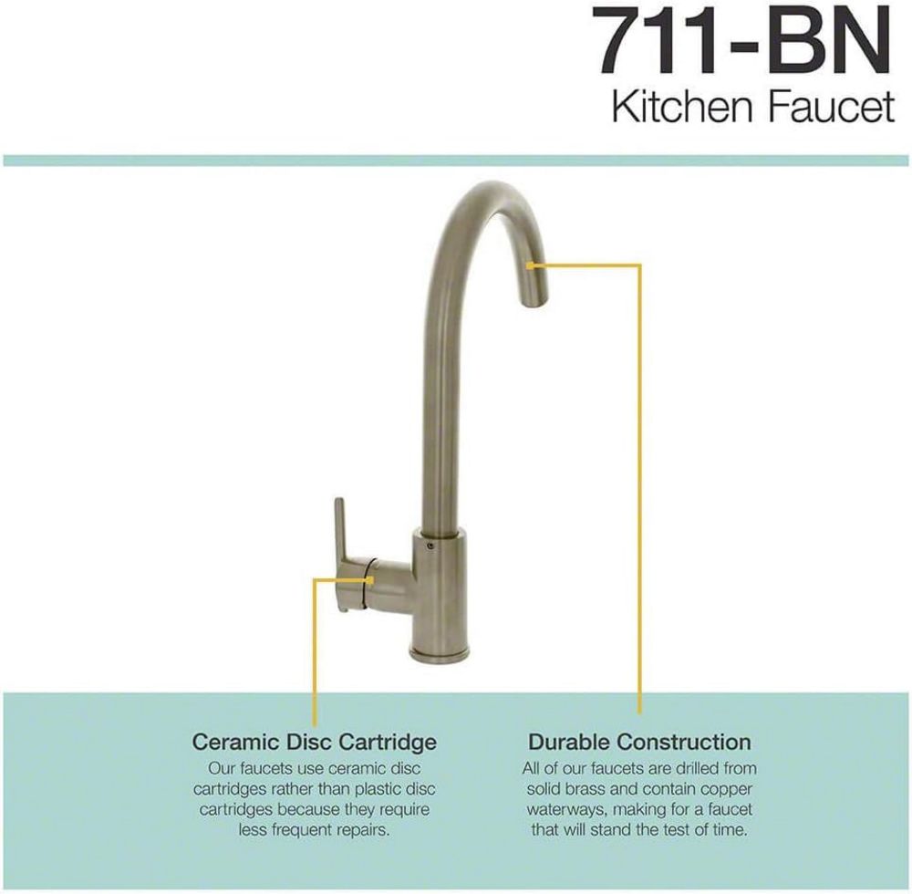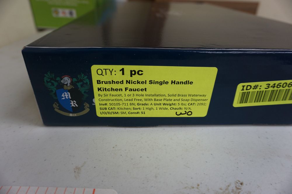 Brushed Nickel Single Handle Kitchen Faucet. By Sir Faucet, 1 or 3 Hole Installation, Solid Brass Waterway Constrution, Lead Free, With Base Plate and Soap Dispenser,This is a liquidated product. Any pre-existing retail, wholesale or manufacturer warranties will not transfer with the sale of this Product unless expressly stated otherwise. Weight: 5. Sold by: Piece. Sold as: Quantity X Price. Inventory #: 50105-711 BN