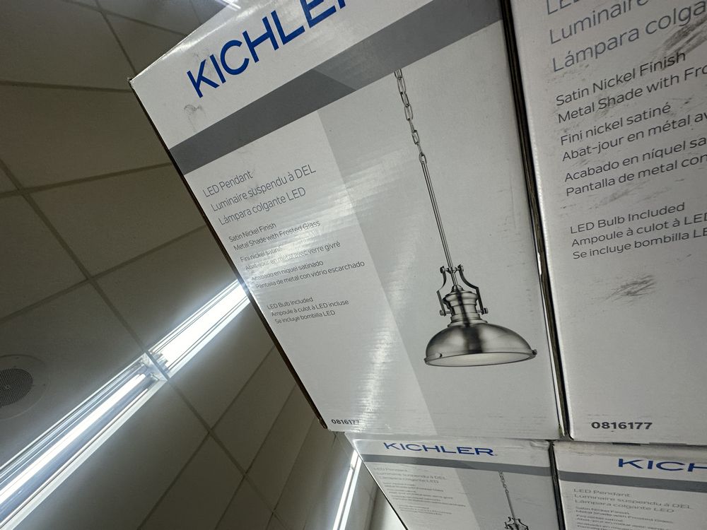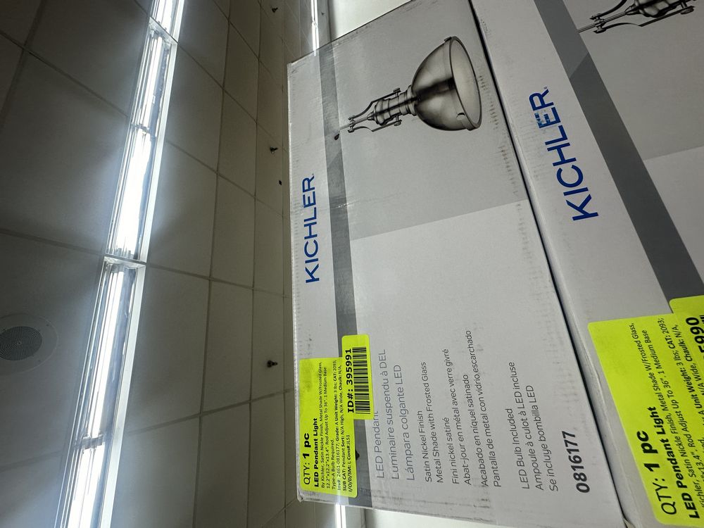LED Pendant Light. By Kichler, Satin Nickel Finish, Metal Shade w/ Frosted Glass, 12.2"x12.2"x13.4", Rod adjust up to 36", 1 Medium Base Type-A Bulb Required, Grade: A,This is a liquidated product. Any pre-existing retail, wholesale or manufacturer warranties will not transfer with the sale of this Product unless expressly stated otherwise. Weight: 3. Sold by: Piece. Sold as: Quantity X Price. Inventory #: 2461-0816177