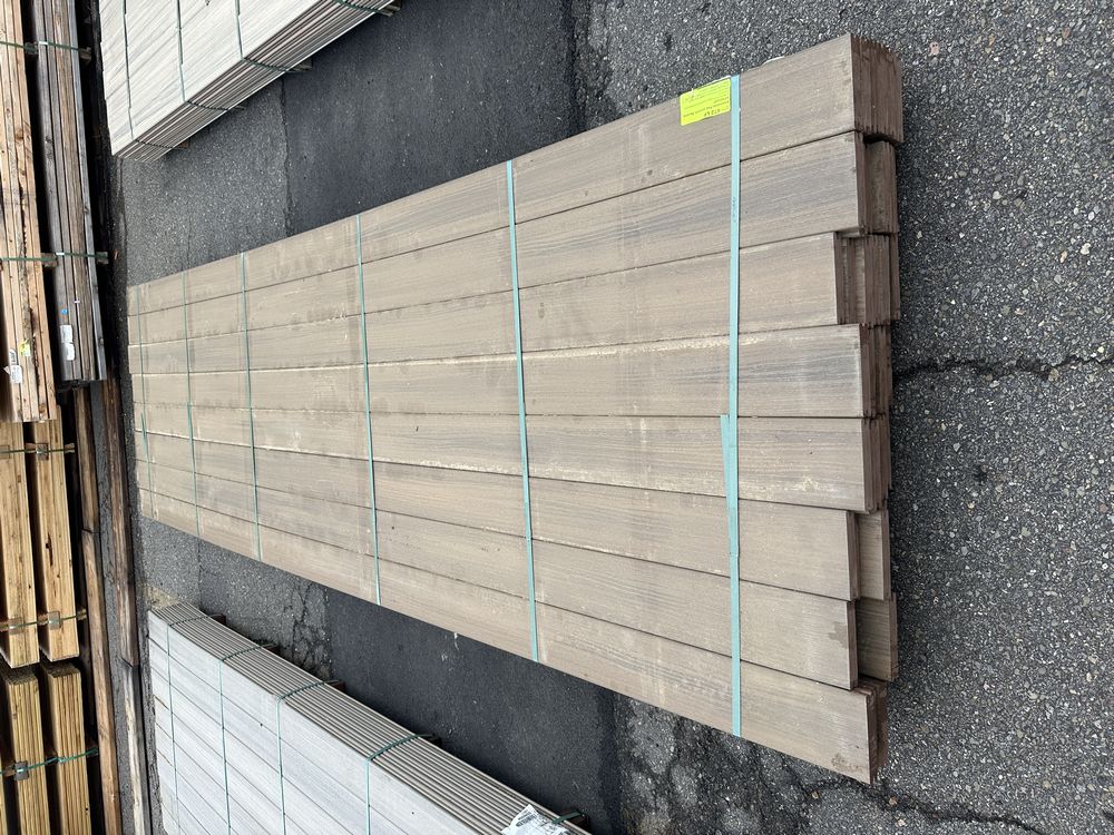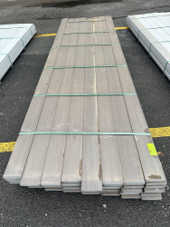 Flagstone Gray Composite Decking 5/4"x6"x12'. By Fiberon, 56 Total Boards Grooved Edge, Actual Dimensions 1"x5 3/8"x12' Grade: B,This is a liquidated product. The Auction Company makes no express or implied representations or warranties of any kind regarding the Product. Any pre-existing retail, wholesale or manufacturer warranties will not transfer with the sale of this Product unless expressly stated otherwise on this page. The Buyer accepts the Product in as-is condition, with all faults. Weight: x. Sold by: Linear Foot. Sold as: Quantity X Price. Inventory #: 1019-PVC-FS 5/4x06x12