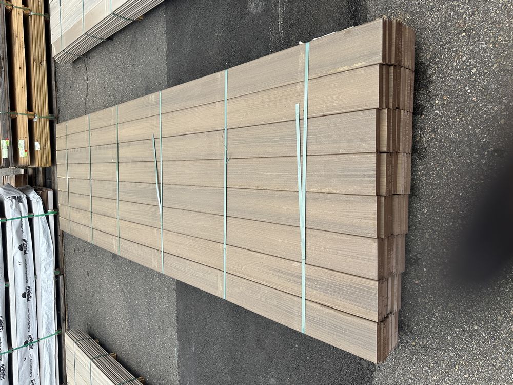 Flagstone Gray Composite Decking 5/4"x6"x12'. By Fiberon, 56 Boards Total, Grooved Edge, Flat Bottom, Actual Dimensions 1"x5 3/8"x12' Grade: B,This is a liquidated product. The Auction Company makes no express or implied representations or warranties of any kind regarding the Product. Any pre-existing retail, wholesale or manufacturer warranties will not transfer with the sale of this Product unless expressly stated otherwise on this page. The Buyer accepts the Product in as-is condition, with all faults. Weight: x. Sold by: Linear Foot. Sold as: Quantity X Price. Inventory #: 1019-PVC-FS 5/4x06x12