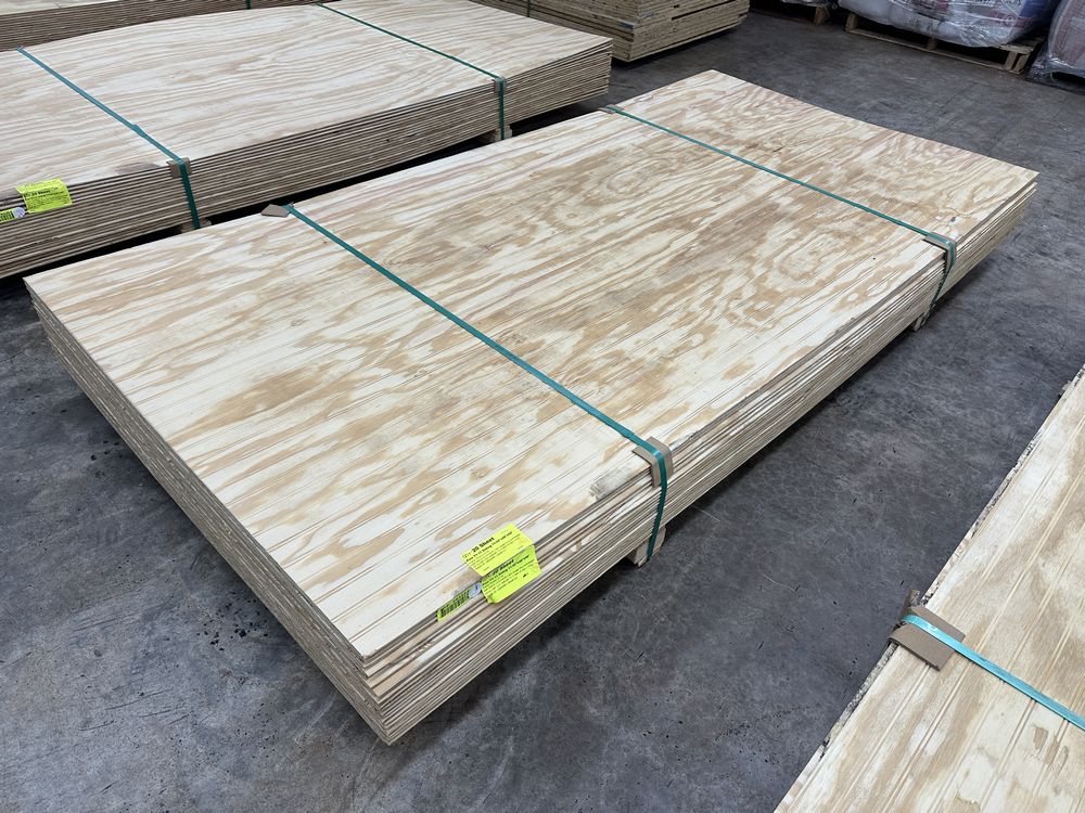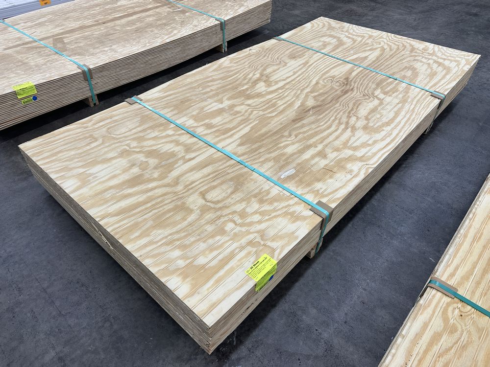 Pine T1-11 Siding 11/32"x48"x96" **SEE DESCRIPTION**. Shiplap, Beaded 1.6" OC Grade: Shop **Fork Damage, Heavy Splits/Cracks, Delaminated**,This is a liquidated product. The Auction Company makes no express or implied representations or warranties of any kind regarding the Product. Any pre-existing retail, wholesale or manufacturer warranties will not transfer with the sale of this Product unless expressly stated otherwise on this page. The Buyer accepts the Product in as-is condition, with all faults. Weight: 960. Sold by: Sheet. Sold as: Quantity X Price. Inventory #: 4440-SL 11/32x48x96