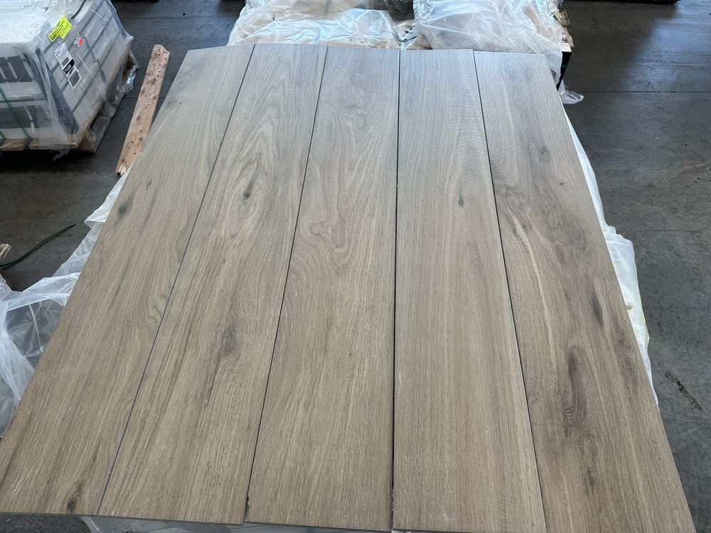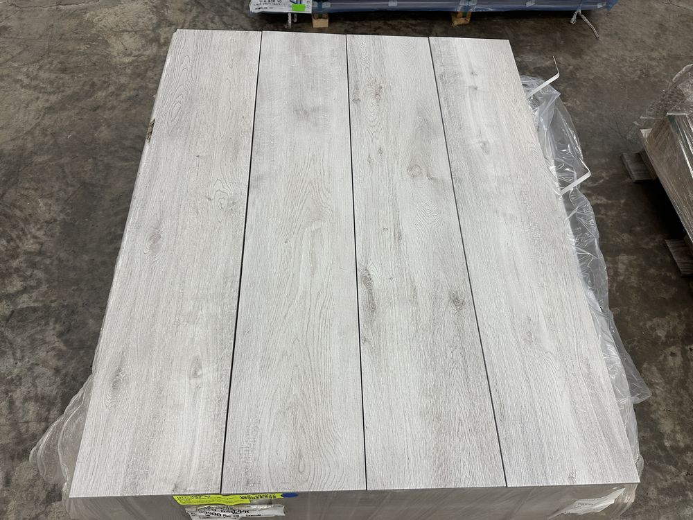 Native Pine Porcelain Tile 8"x48". By Florim USA, 24 Boxes,7 pieces per box, 18.69 square ft. per box. Grade: B This is a liquidated product. The Auction Company makes no express or implied representations or warranties of any kind regarding the Product. Any pre-existing retail, wholesale or manufacturer warranties will not transfer with the sale of this Product unless expressly stated otherwise on this page. The Buyer accepts the Product in as-is condition, with all faults. Weight: 2400lbs. Sold by: Square Foot. Sold as: Quantity X Price. Inventory #: 2046-1104813
