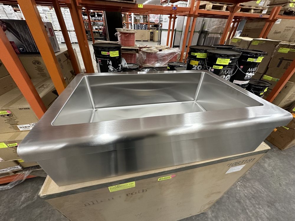 Manor House Stainless Steel Single Sink 33"x20 7/8"x9" MSRP: $2762. By Franke, 16 Gauge, Apron Front, 33"x20 7/8"x9", Undermount, Grade: A,This is a liquidated product. Any pre-existing retail, wholesale or manufacturer warranties will not transfer with the sale of this Product unless expressly stated otherwise. Weight: 40. Sold by: Piece. Sold as: Quantity X Price. Inventory #: 5016-MHX710-33