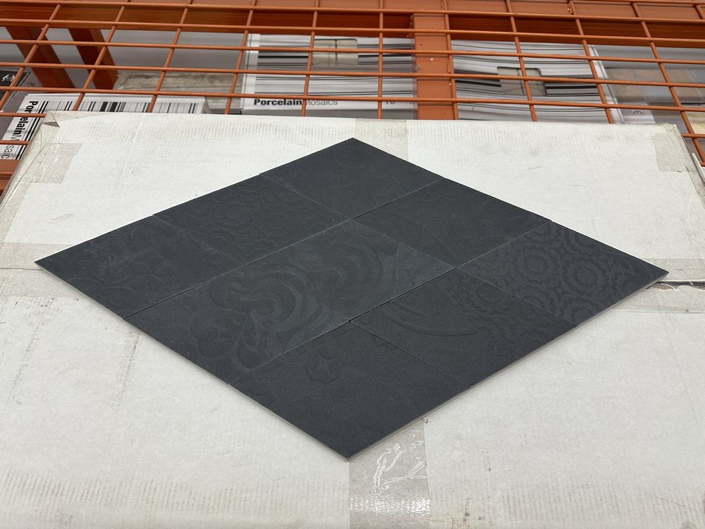 Charcoal Leaf and Circle and Classico Diamond Shape Mosaic Tile 4"x10". Everstone, 6 Boxes, 60 Pieces per box Grade: A,This is a liquidated product. Any pre-existing retail, wholesale or manufacturer warranties will not transfer with the sale of this Product unless expressly stated otherwise. Weight: x. Sold by: Box. Sold as: Quantity X Price. Inventory #: 20404-DS-CC2102N-RLF-DIAM
