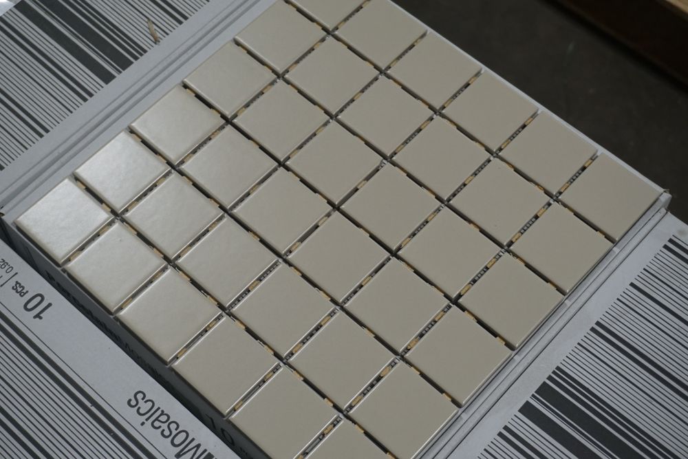 Soho Linen Matte Porcelain Mosaics Tile 2" x 2". By Shaw, 10 Sheets per Box, Grade A This is a liquidated product. Any pre-existing retail, wholesale or manufacturer warranties will not transfer with the sale of this Product unless expressly stated otherwise. Weight: 150 lbs.. Sold by: Sheet. Sold as: Quantity X Price. Inventory #: 8510-85101-2U173-00200