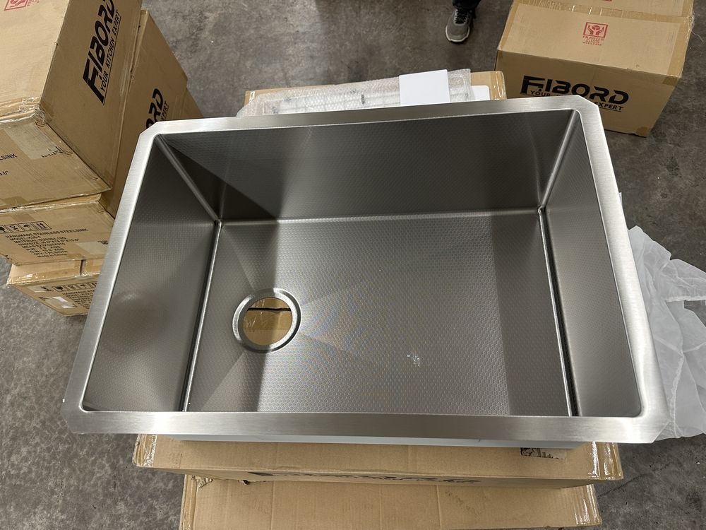 Handcrafted Stainless Steel Single Basin Sink 28"x18"x10". By Fibord Top/ Undermount w/ Metal Dish Rack Grade: New In Box,This is a liquidated product. Any pre-existing retail, wholesale or manufacturer warranties will not transfer with the sale of this Product unless expressly stated otherwise. Weight: x. Sold by: Piece. Sold as: Quantity X Price. Inventory #: 50106-K28-1