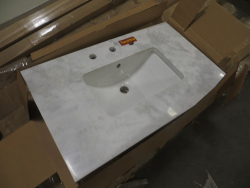 Granite Vanity Top 31" x 19" W/ Undermount Sink. Colors May Slightly Vary, They are white and grey with a hint of tan speckle. Vanity Top Constructed Of Granite; Providing A Sturdy Feel And Clean Appearance, Has A Backsplash To Help Contain Any Messes, 8" Faucet Spread, DOES NOT Come With Faucet And Waste Assembly, Grade: A This is a liquidated product. Any pre-existing retail, wholesale or manufacturer warranties will not transfer with the sale of this Product unless expressly stated otherwise. Weight: X. Sold by: Piece. Sold as: Quantity X Price. Inventory #: 5021-31x19