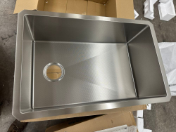 Stainless Steel Single Bowl Kitchen Sink 33"x22"x9". By Franke, 18 Gauge, 33"x22"x9", Pre Attached Clips Included, Hand Fabricated, Dual Mount, Grade: A,This is a liquidated product. Any pre-existing retail, wholesale or manufacturer warranties will not transfer with the sale of this Product unless expressly stated otherwise. Weight: 31. Sold by: Piece. Sold as: Quantity X Price. Inventory #: 5016-HFS3322-2