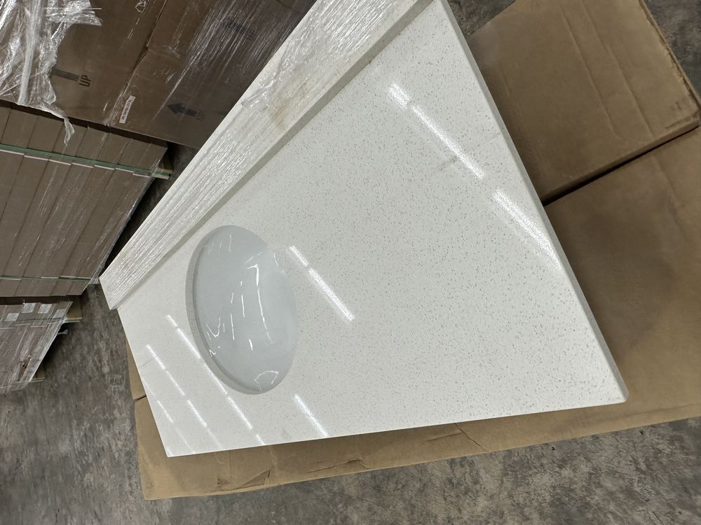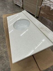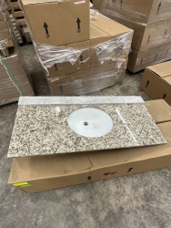 White Sands Single Bowl Granite Vanity Top 49"x22". Drop in with Backsplash, Oval Bowl. Grade: A. This is a liquidated product. Any pre-existing retail, wholesale or manufacturer warranties will not transfer with the sale of this Product unless expressly stated otherwise. This is a liquidated product. Any pre-existing retail, wholesale or manufacturer warranties will not transfer with the sale of this Product unless expressly stated otherwise. Weight: 115. Sold by: Piece. Sold as: Quantity X Price. Inventory #: 5021-WHS 49x22