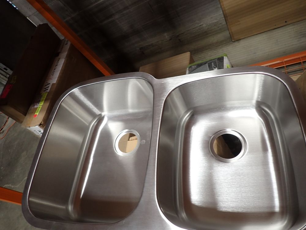 Stainless Steel Double Bowl Sink 32 1/2"x18 1/4"x9". By Karran, undermount, Bowl 1- 16 5/8"x18 1/4"x9", Bowl 2- 16 5/8"x18 1/4"x9" This is a liquidated product. Any pre-existing retail, wholesale or manufacturer warranties will not transfer with the sale of this Product unless expressly stated otherwise. Weight: 15 lbs.. Sold by: Piece. Sold as: Quantity X Price. Inventory #: 50510-BC-5050