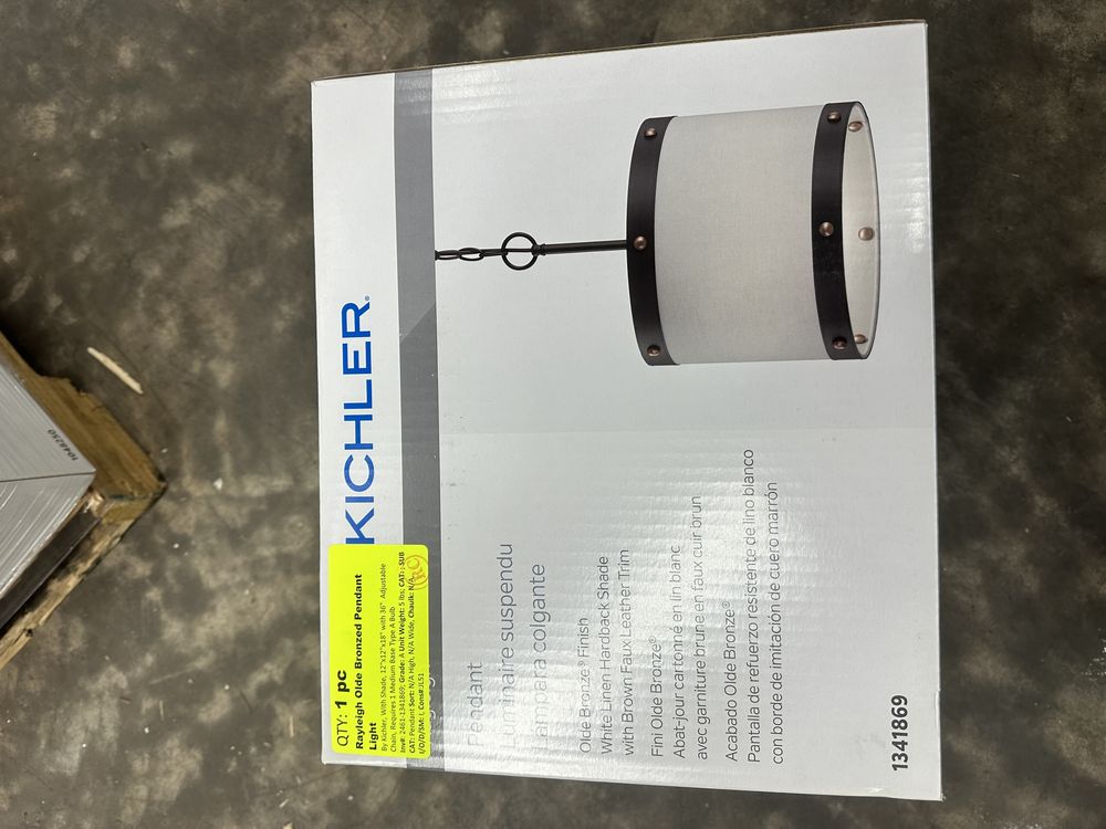 Rayleigh Olde Bronzed Pendant Light. By Kichler, With Shade, 12"x12"x18", with 36" Adjustable Chain, Requires 1 Medium Base Type A Bulb, Grade: A,This is a liquidated product. Any pre-existing retail, wholesale or manufacturer warranties will not transfer with the sale of this Product unless expressly stated otherwise. Weight: 5. Sold by: Piece. Sold as: Quantity X Price. Inventory #: 2461-1341869