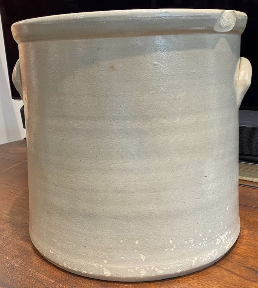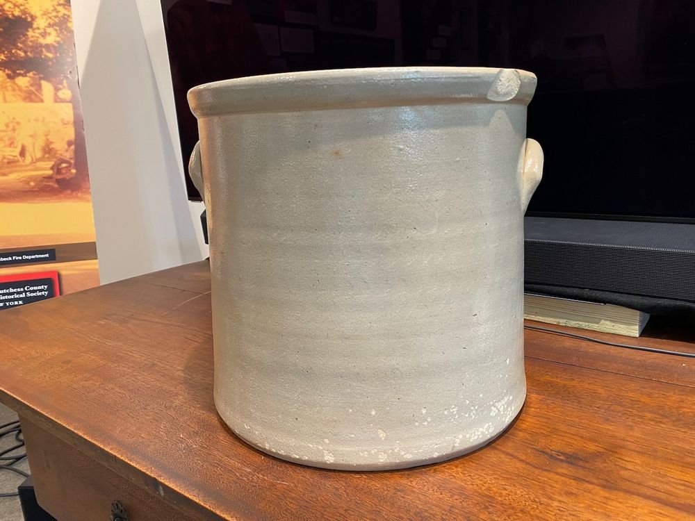 Judge Brands hand-picked this 19th century beauty from his chambers in the Supreme Court building in Poughkeepsie, NY. Circa 1850’s, this double handled crock measures 11"tall x 11.5"dia and is salt-glazed stoneware decorated in cobalt blue having a beautiful motif. (Judge Brands donated crocks to the DCHS In 2021, 2022 & 2023 which sold for $430, $345 and $517!)