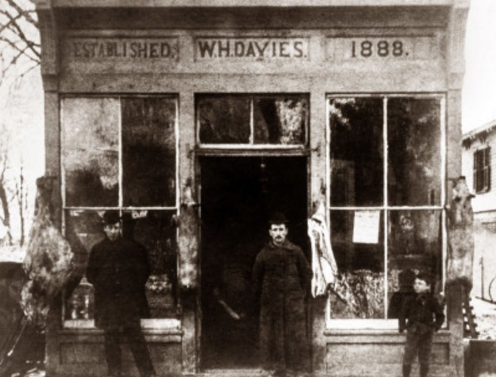 In 1888, their son, William H. Davies saved enough money from working the local brickyard to purchase the Main Street property where Davies Hardware Inc stands, to this day. It was first a butcher shop, which also sold general merchandise. Behind the store was a livery stable, where people would rent a horse and carriage.