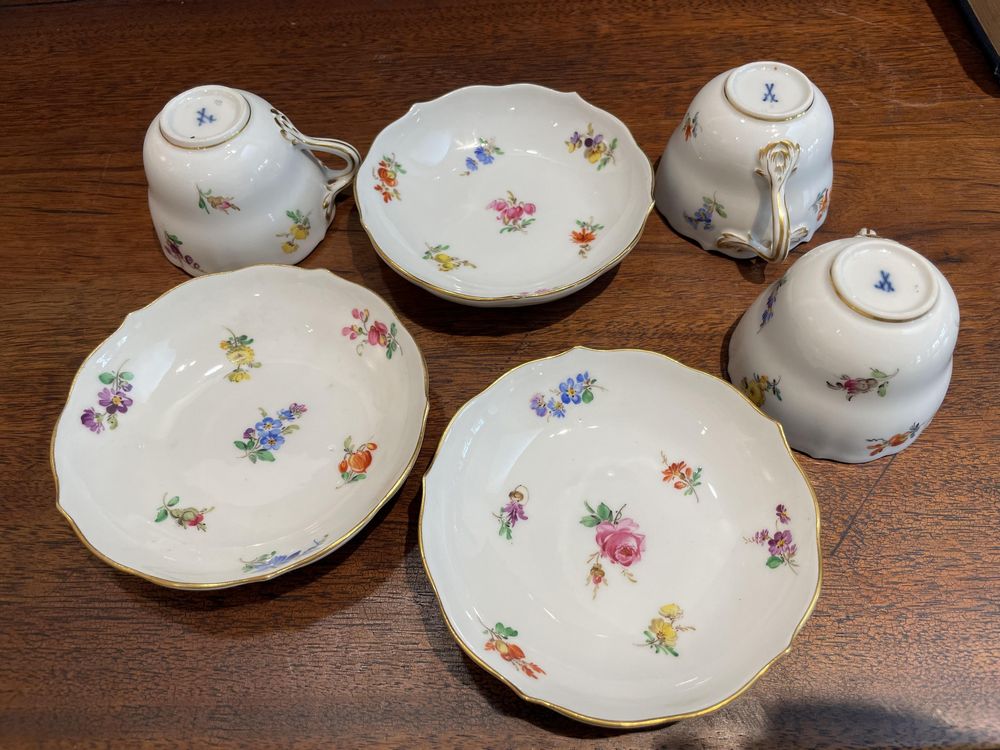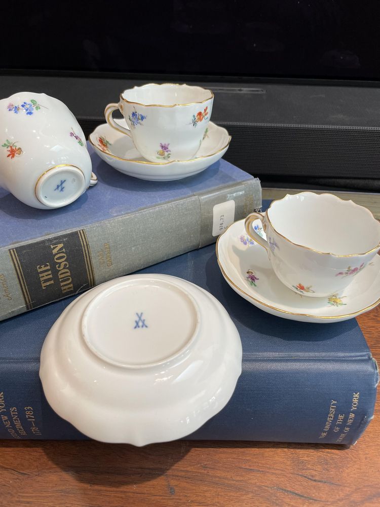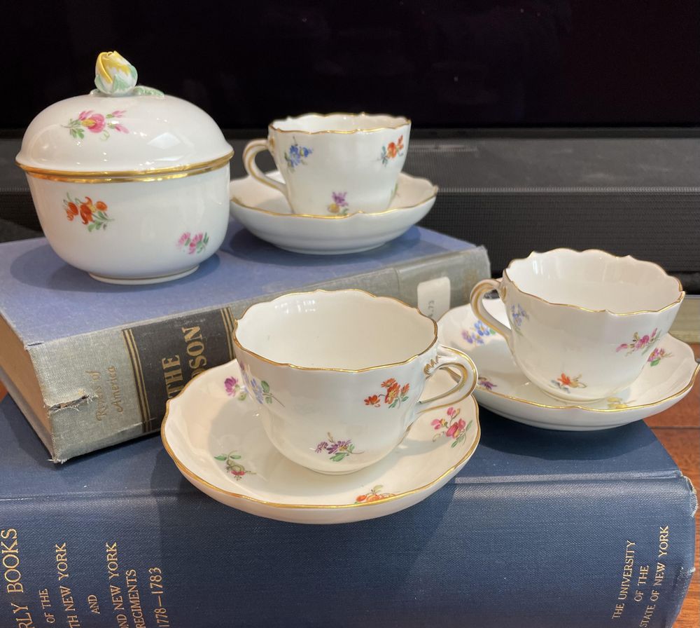 Three Meissen Demitasse Cup & Saucers & Sugar Bowl, Pickup Only, Rhinebeck, NY