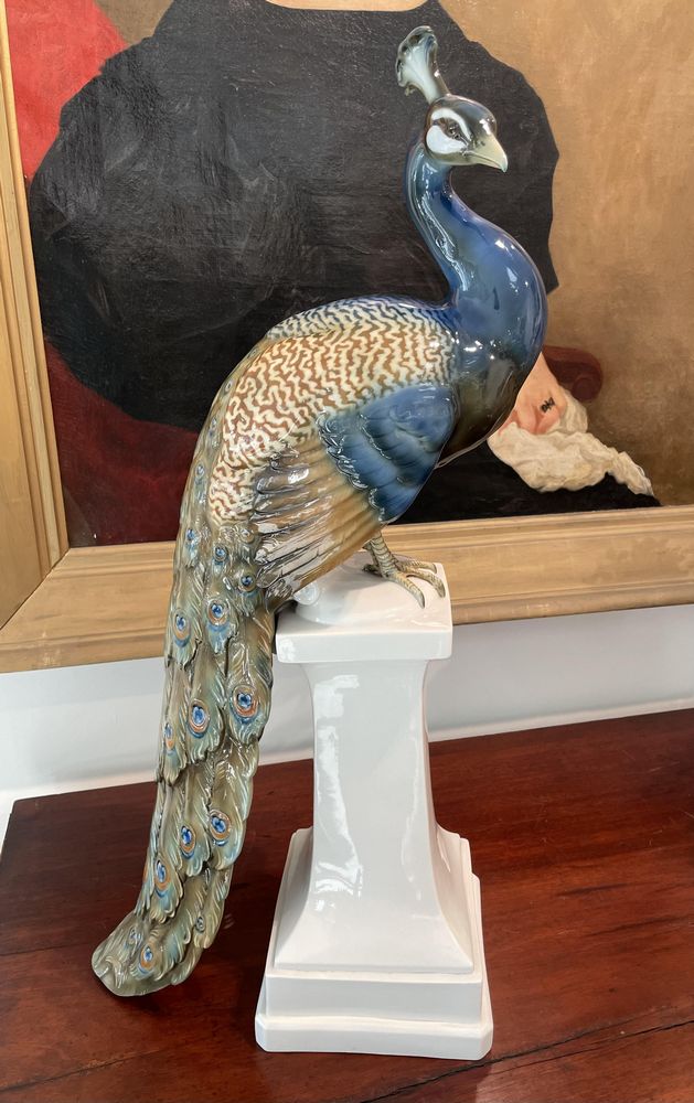 Monumental Porcelain Statue Edmund Sode "Peacock on a High Pedestal", Pickup Only, Rhinebeck, NY